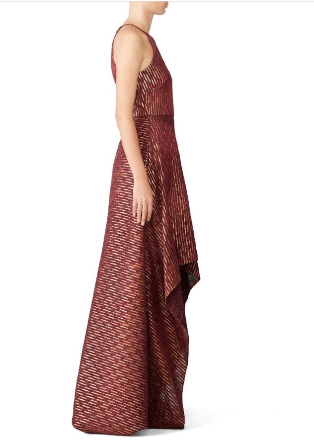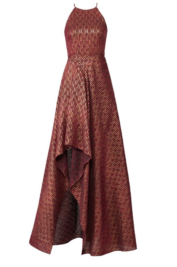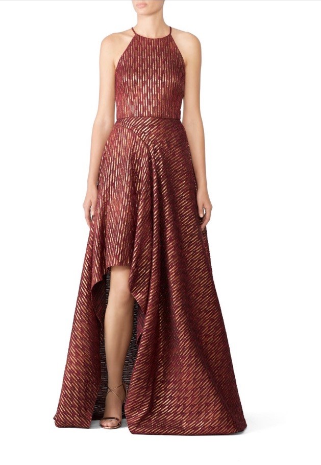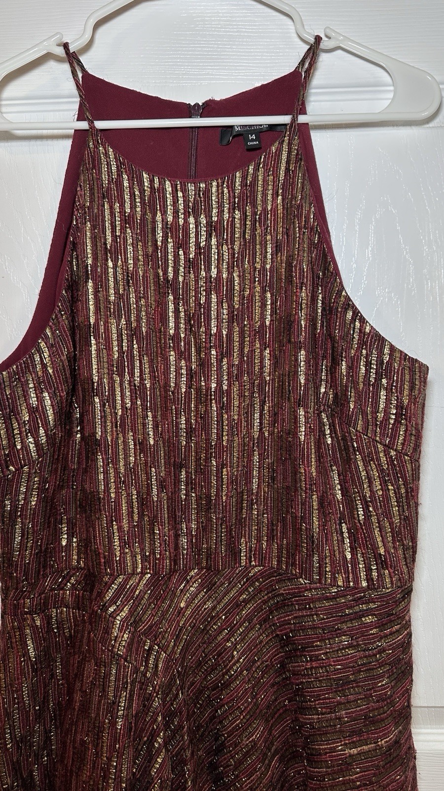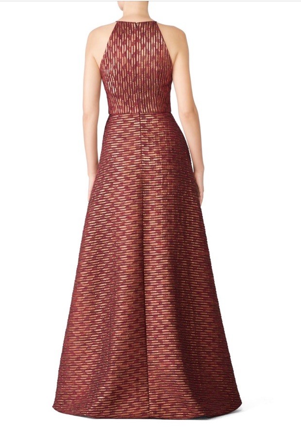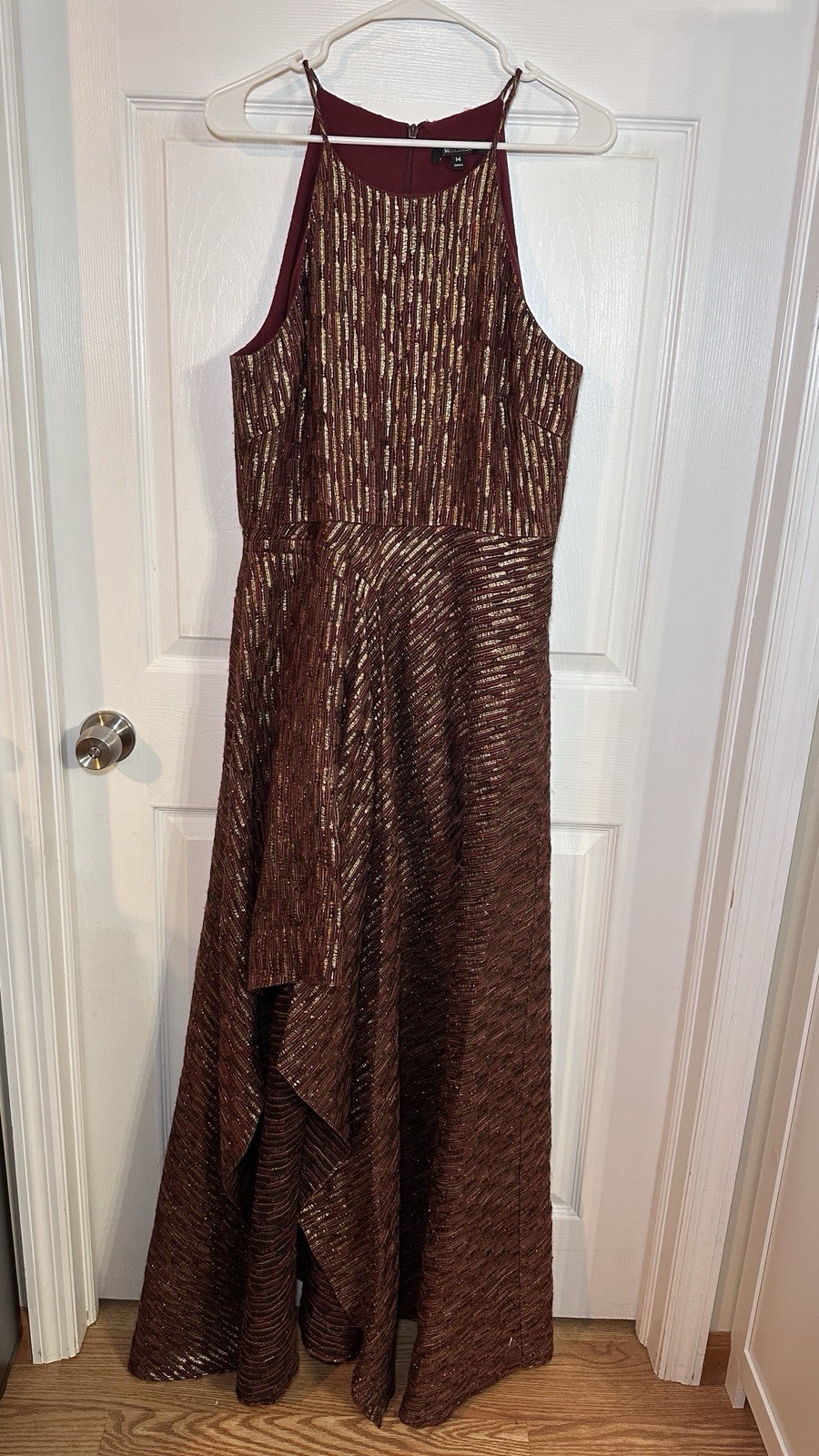 The Badgley Mischka Ruby Gold Halter Gown is a luxurious and elegant ball gown designed for women. This long dress features a halter neckline and is adorned with a ruby gold color, giving it a metallic and sophisticated look. The dress is in size 14, perfect for a regular fit, and is sure to make a statement at any special occasion. With an MSRP of $950, this gown is a high-end fashion piece that exudes glamour and style.