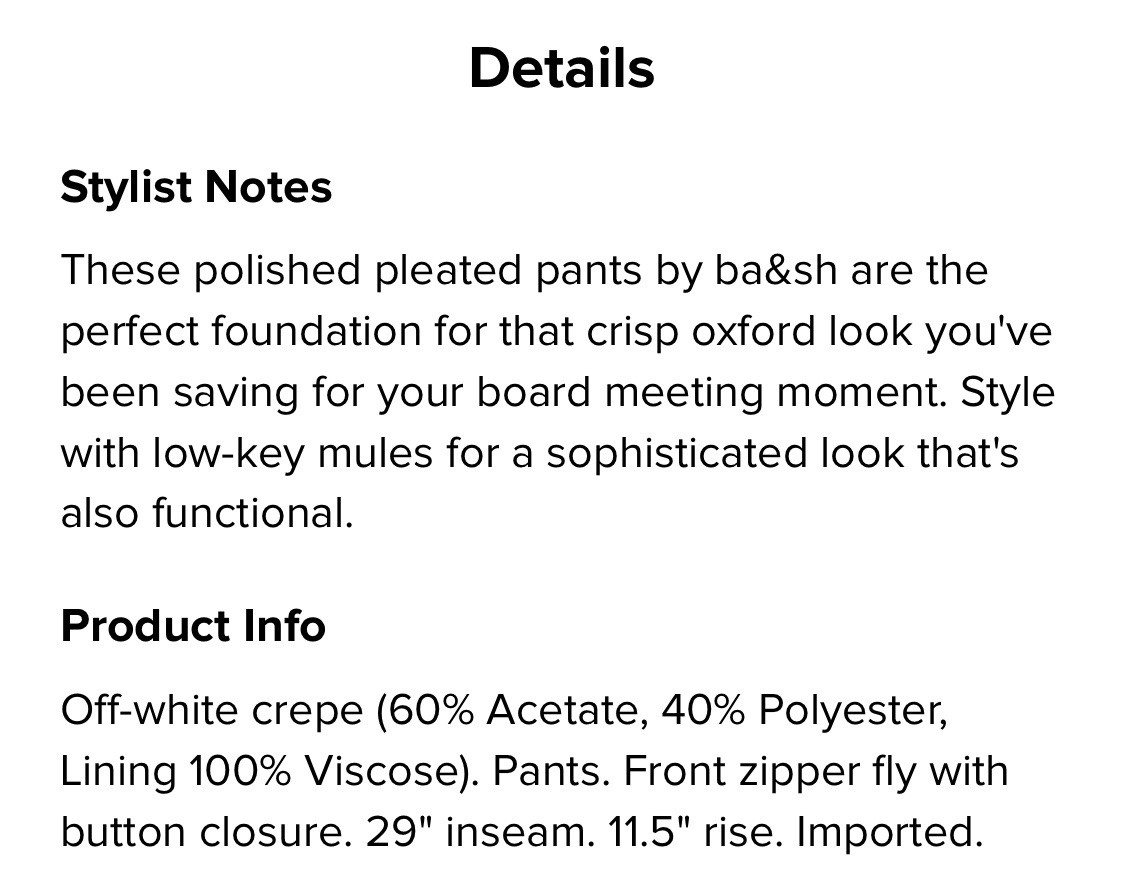 Ba&sh Shen Pants Msrp $295 Size- 38