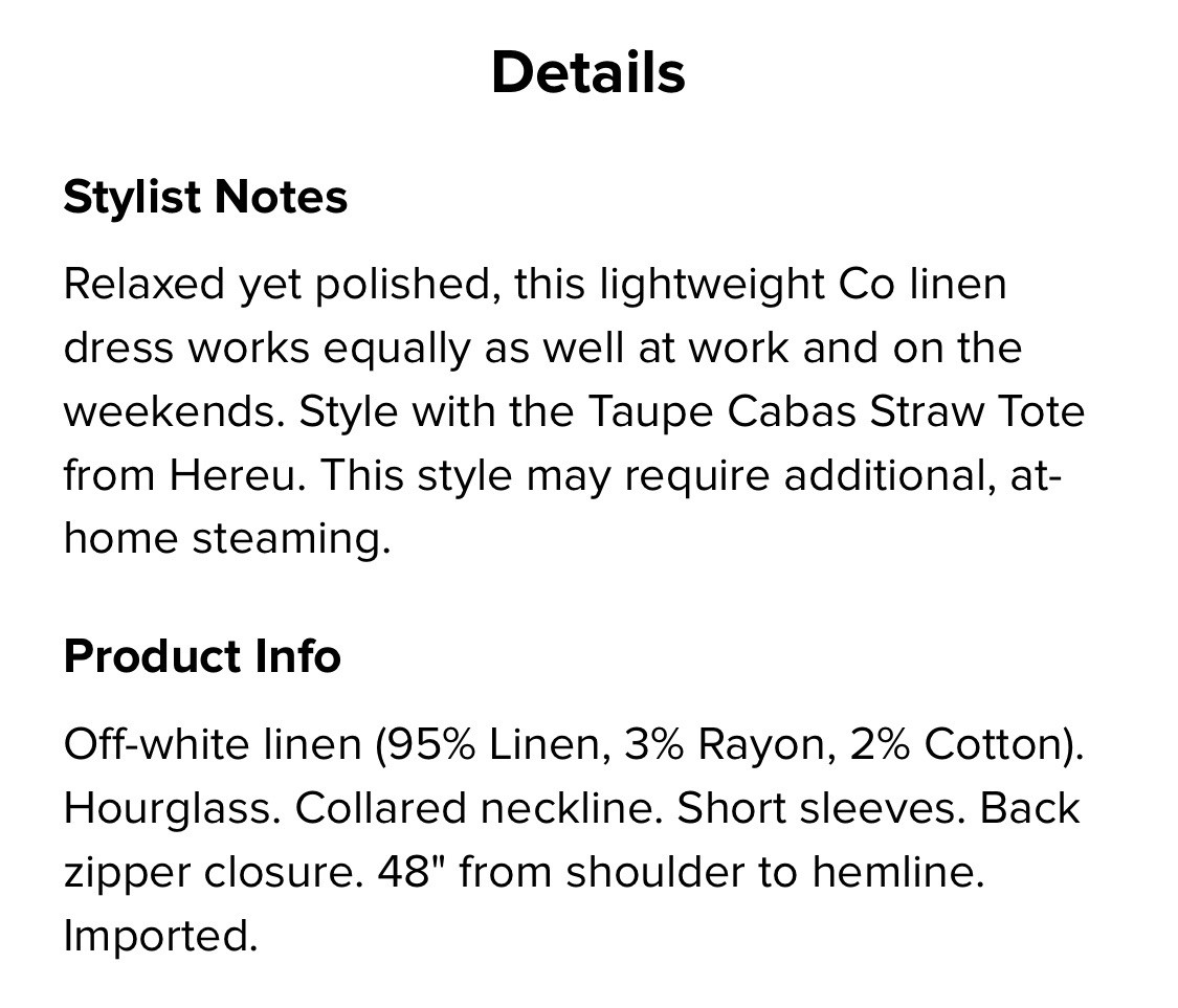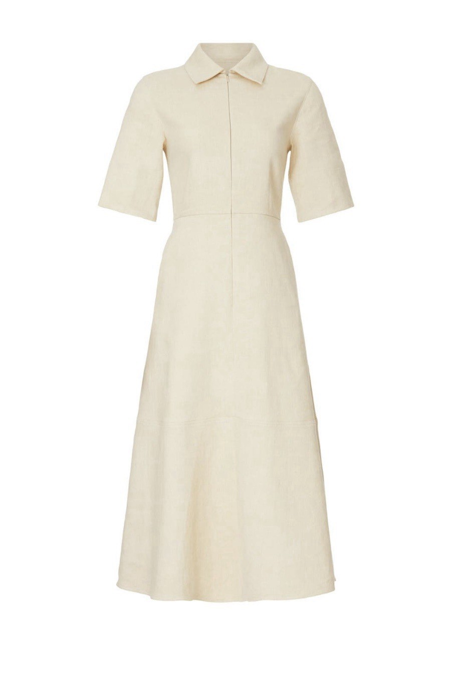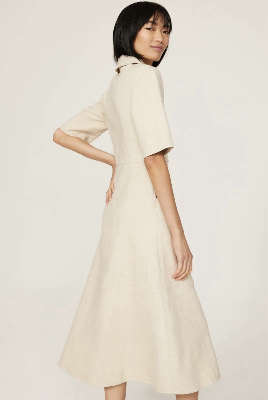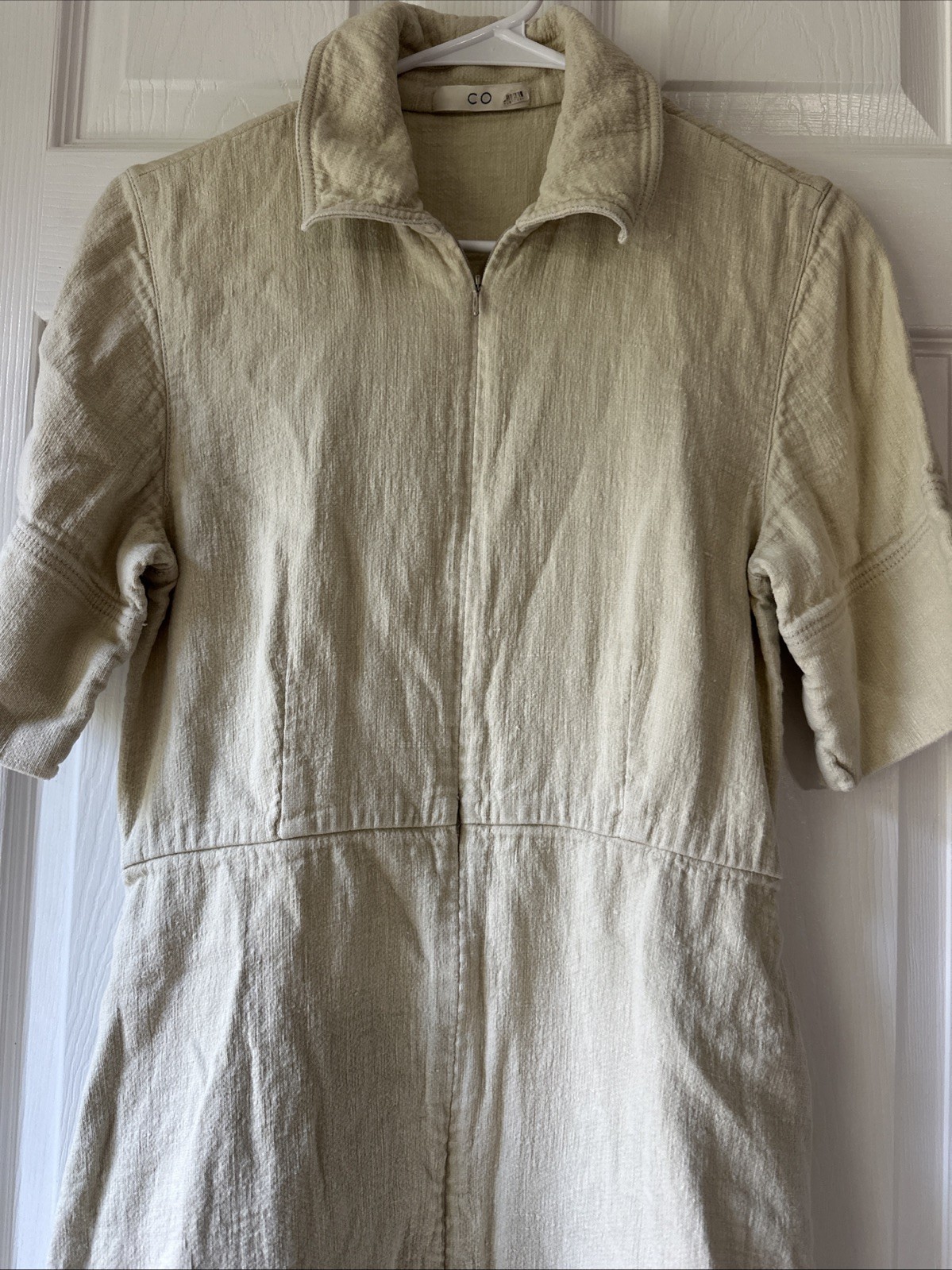 CO Off-white Linen Tunic Midi Dress Size M $1295