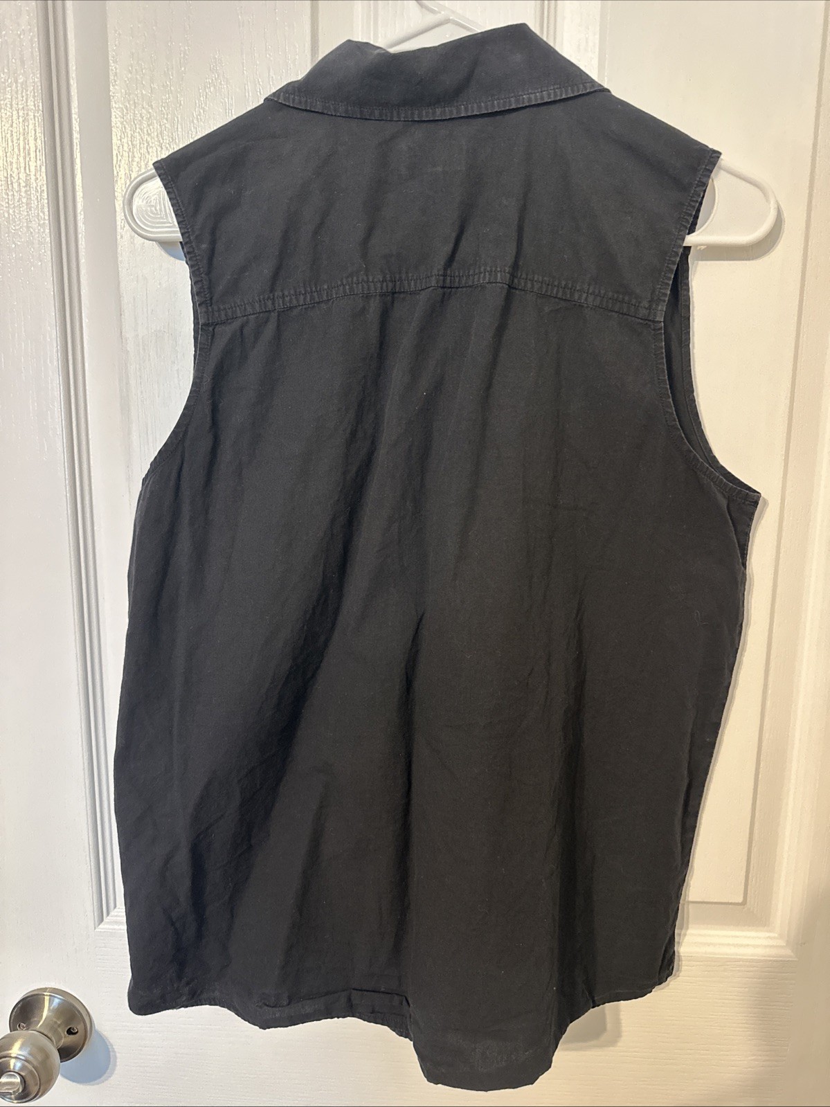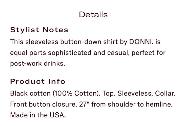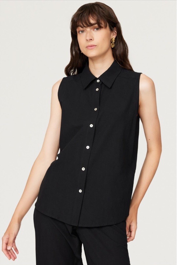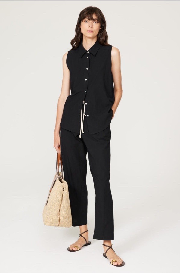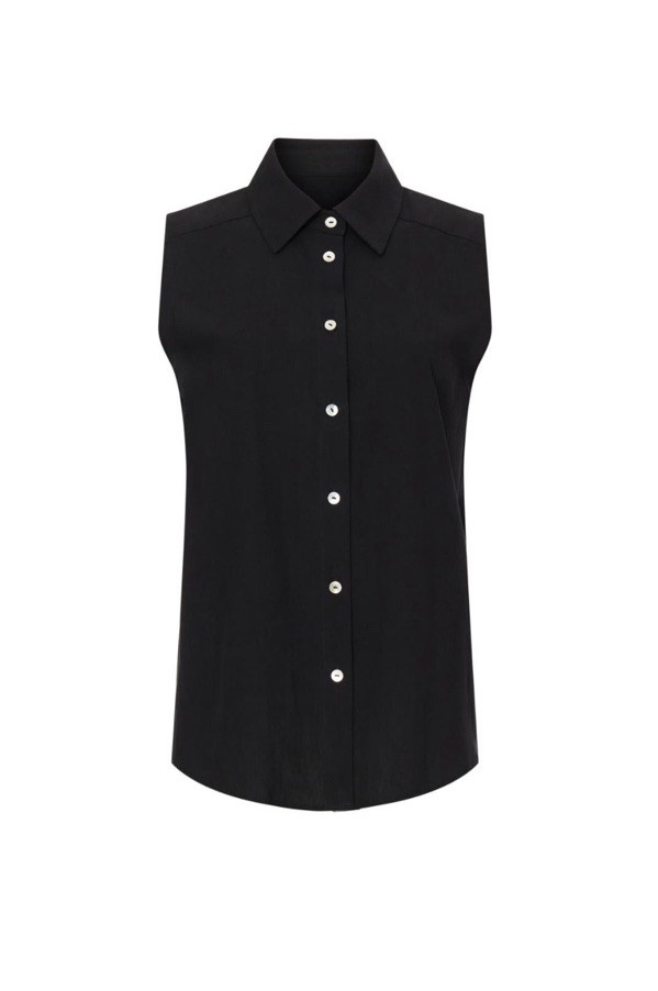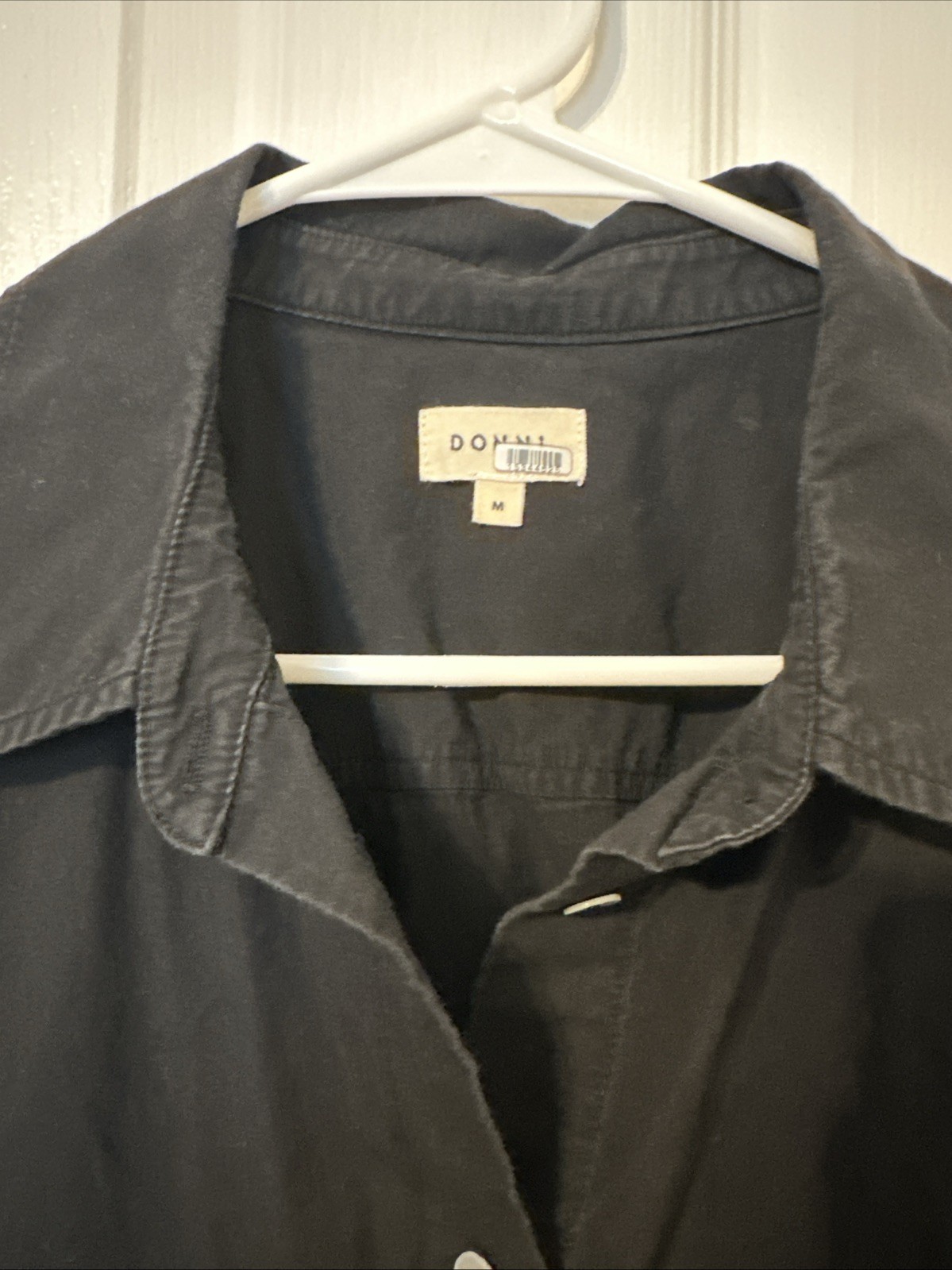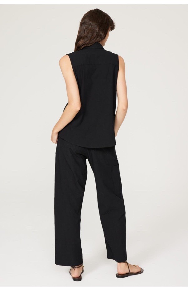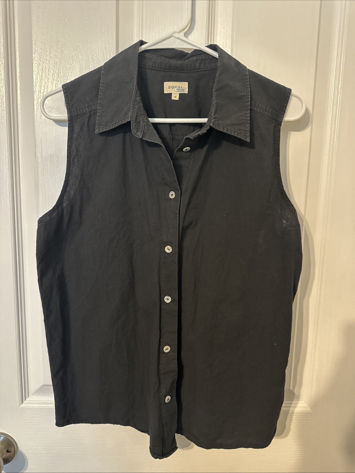 The Donni Sleeveless Shirt in size M is a versatile and stylish blouse designed for women. Made by the brand Donni, this top comes in a classic black color and is perfect for adding a touch of sophistication to any outfit. With its sleeveless design and regular fit, this shirt is perfect for wearing during the warmer months or layering over a tank top in the cooler weather. The quality construction and timeless style make it a must-have piece for any fashion-forward wardrobe.