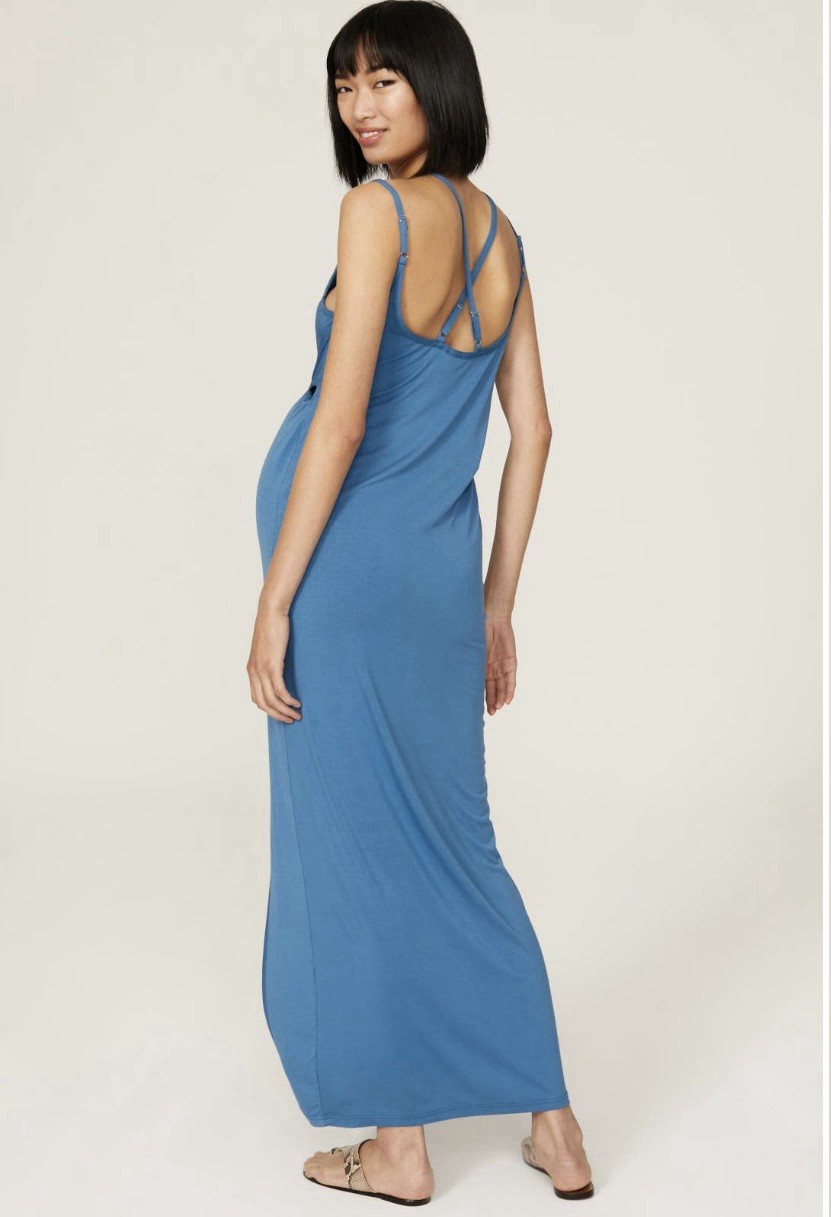 The Emilia George Bella Blue Maternity Dress in size S is a beautiful maxi dress designed for pregnant women. With a long length and a stunning blue color, this dress is perfect for a variety of occasions, from special events to casual outings. The Bella brand ensures quality and style, making this dress a great addition to any woman's wardrobe during pregnancy.