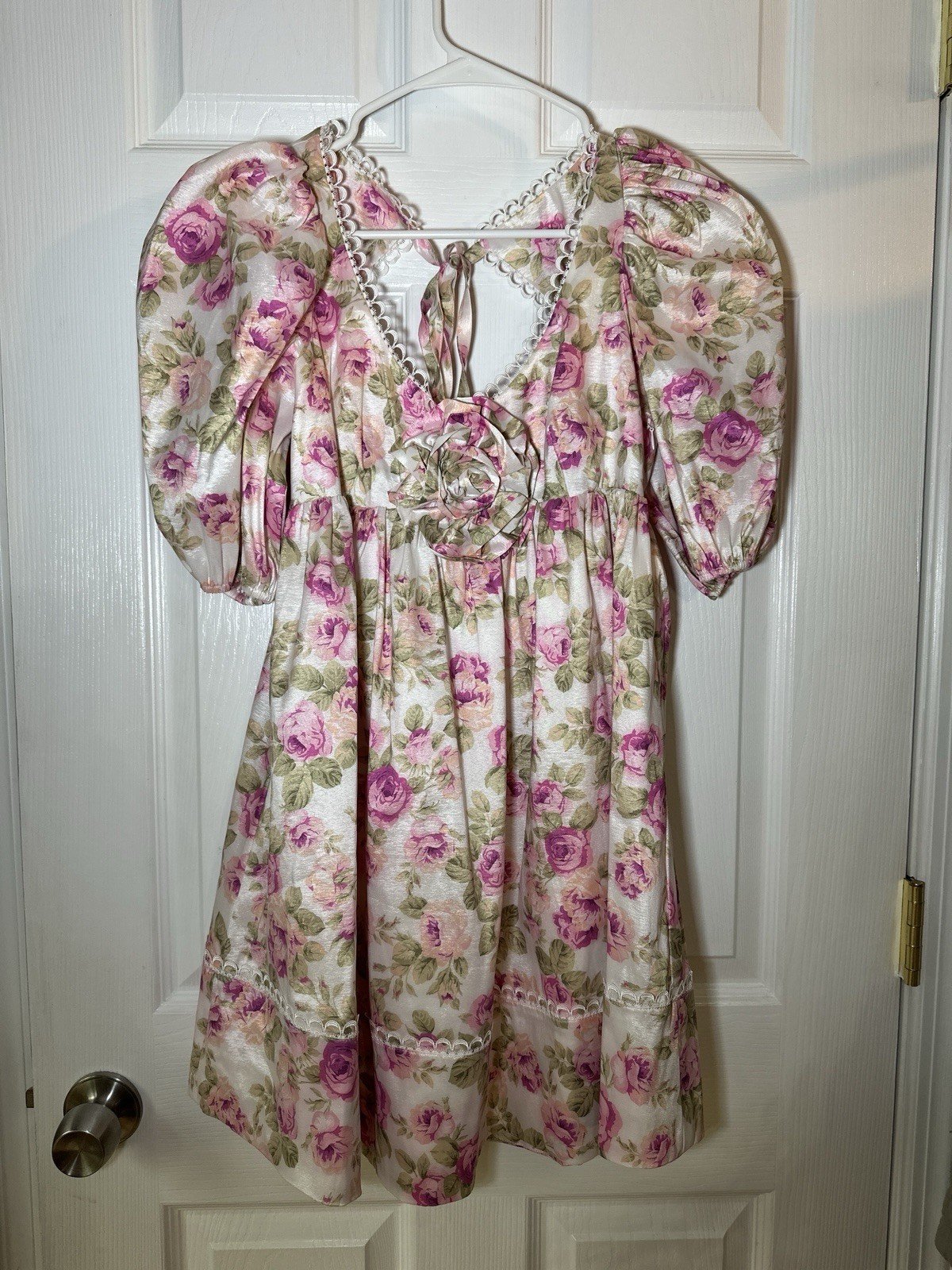 The For Love & Lemons Milani Mini Dress in size S is a stylish and flattering option for women looking for a floral-themed dress. With short sleeves, a white color, and a short length, this dress is perfect for a casual day out or a special occasion. The brand's reputation for quality and attention to detail ensures that this dress will be a standout in any woman's wardrobe, making it a must-have for those who love to make a statement with their fashion choices.