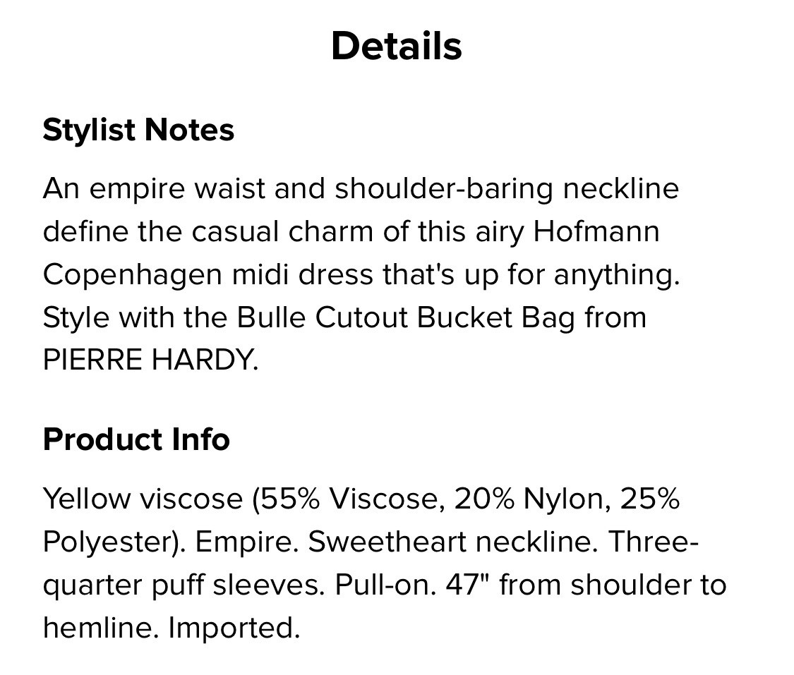 The Hoffman Copenhagen Irina Dress is a stylish maxi dress designed for women in size small. The dress features a vibrant yellow color, a long length, and is perfect for a variety of occasions. Made by the reputable brand Hoffman, this dress combines fashion and comfort with its flattering silhouette and high-quality construction. Whether you're dressing up for a special event or simply looking for a chic addition to your wardrobe, the Hoffman Copenhagen Irina Dress is sure to make a statement.