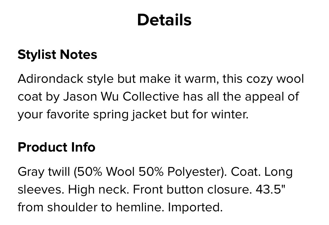 Jason Wu Drawstring Wool Coat – Size Xsmall