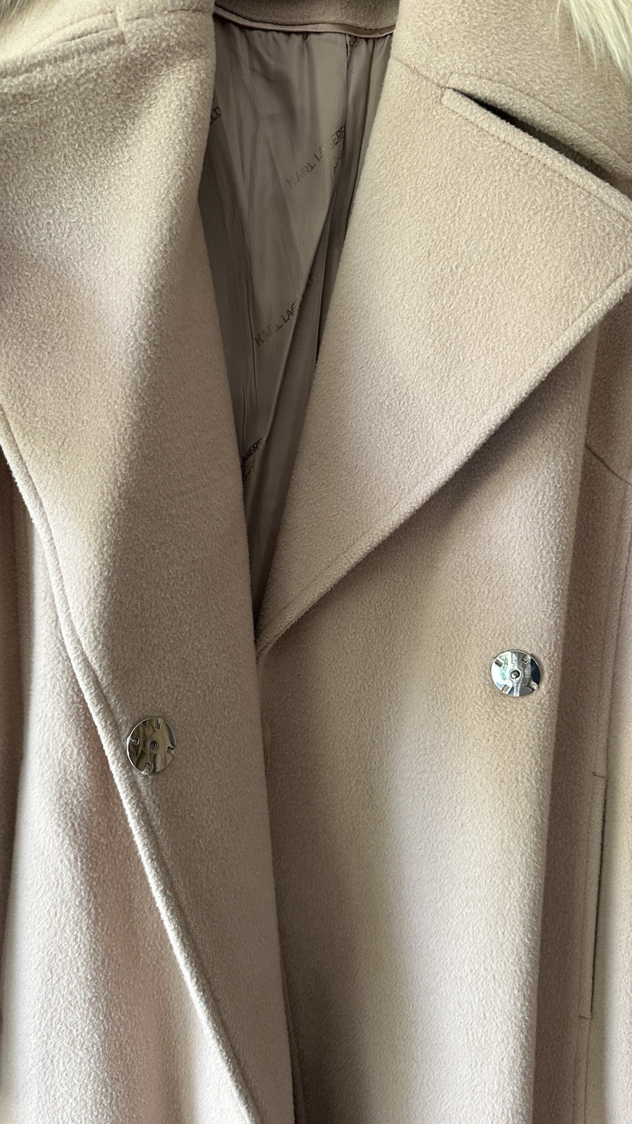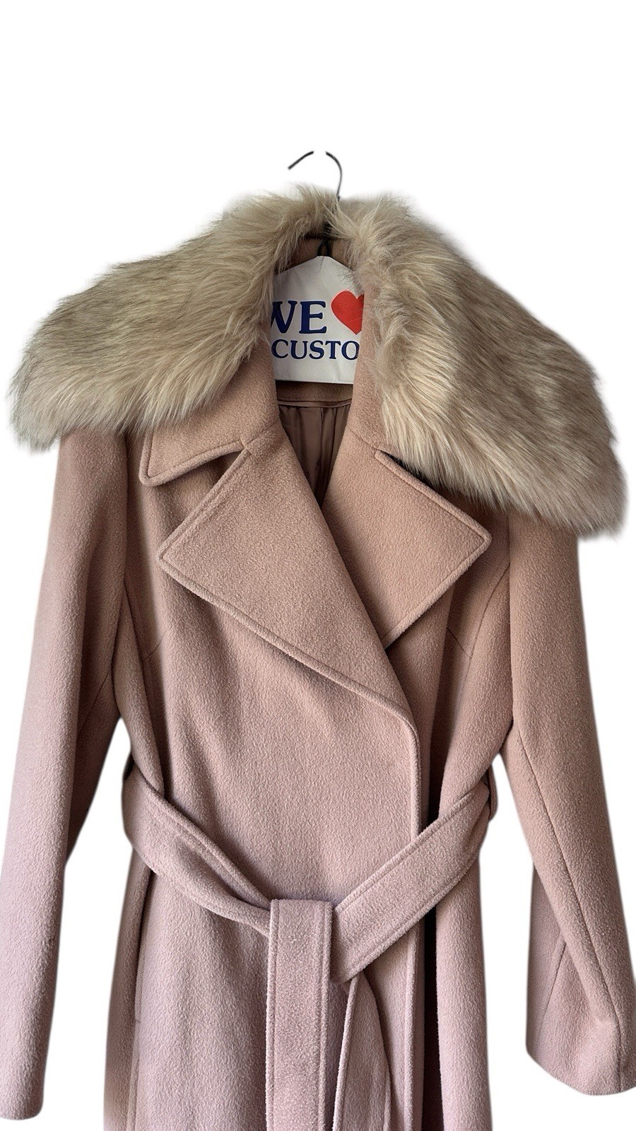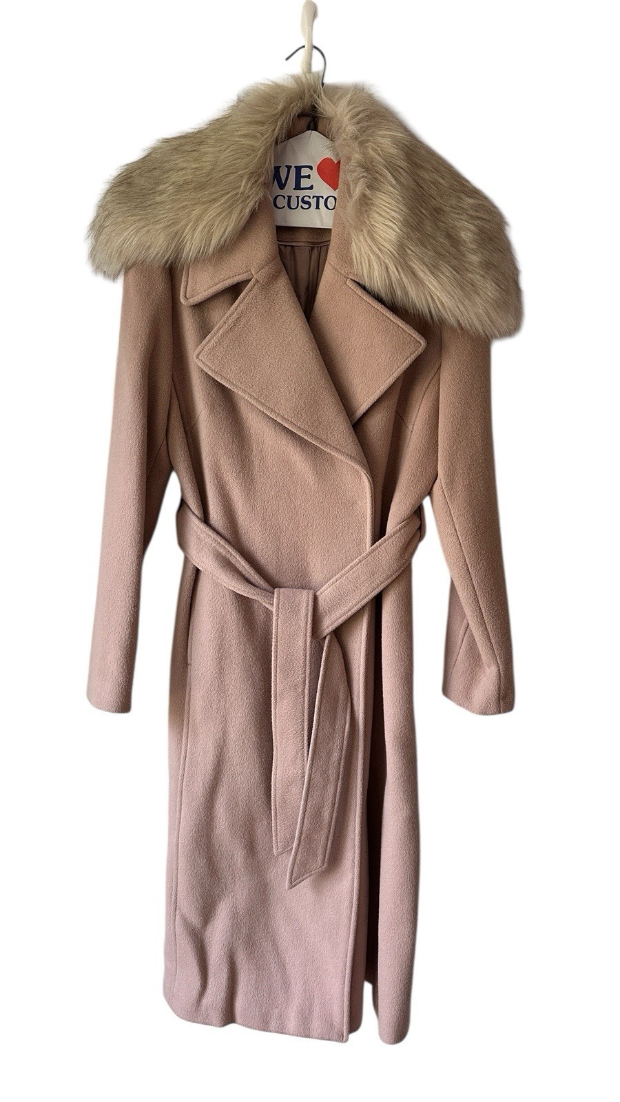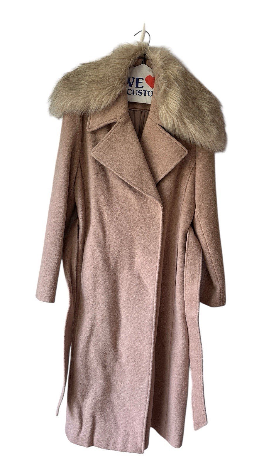 Karl Lagerfeld Womens Tan W/Faux Fur Collared Belted Trench Coat Msrp$375 Size S