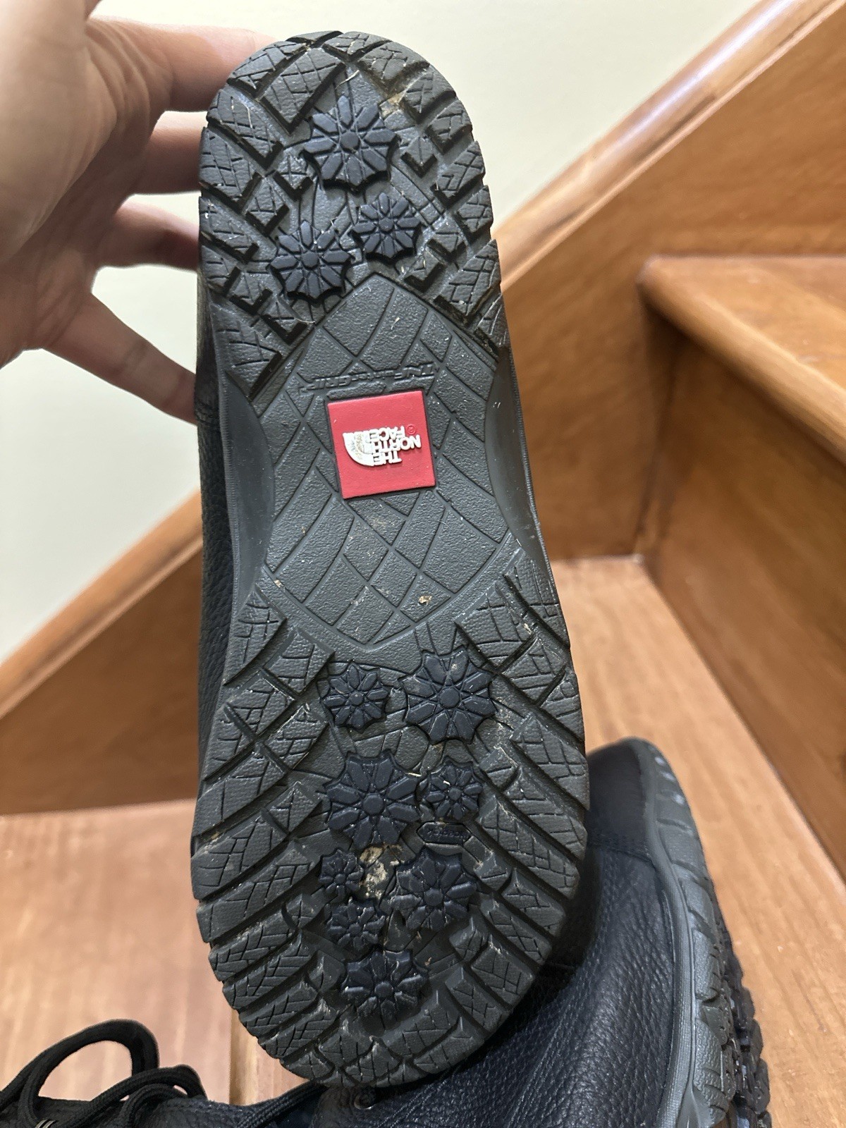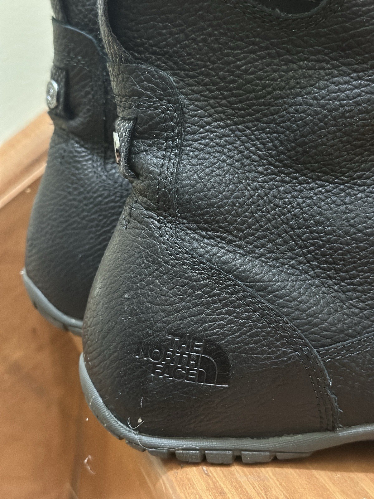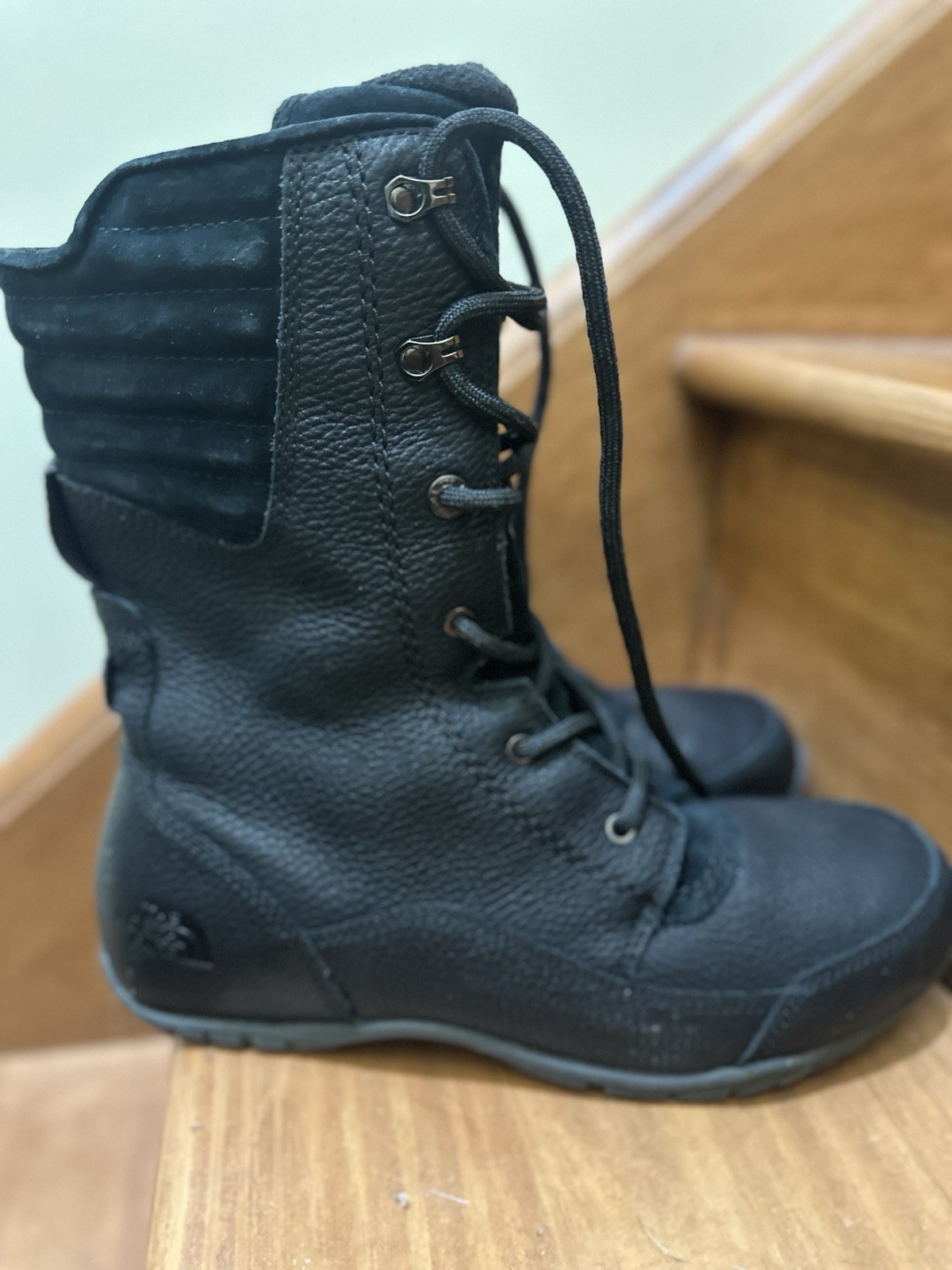 The North Face Women's Winter Boots in Black, size 9.5, are stylish and functional snow boots specifically designed for cold and snowy weather. Made with leather uppers, these boots provide both durability and comfort for winter activities. The sleek black color adds a versatile touch to any outfit, while the brand's reputation for quality ensures long-lasting performance in cold temperatures. Perfect for keeping your feet warm and protected during the winter season.