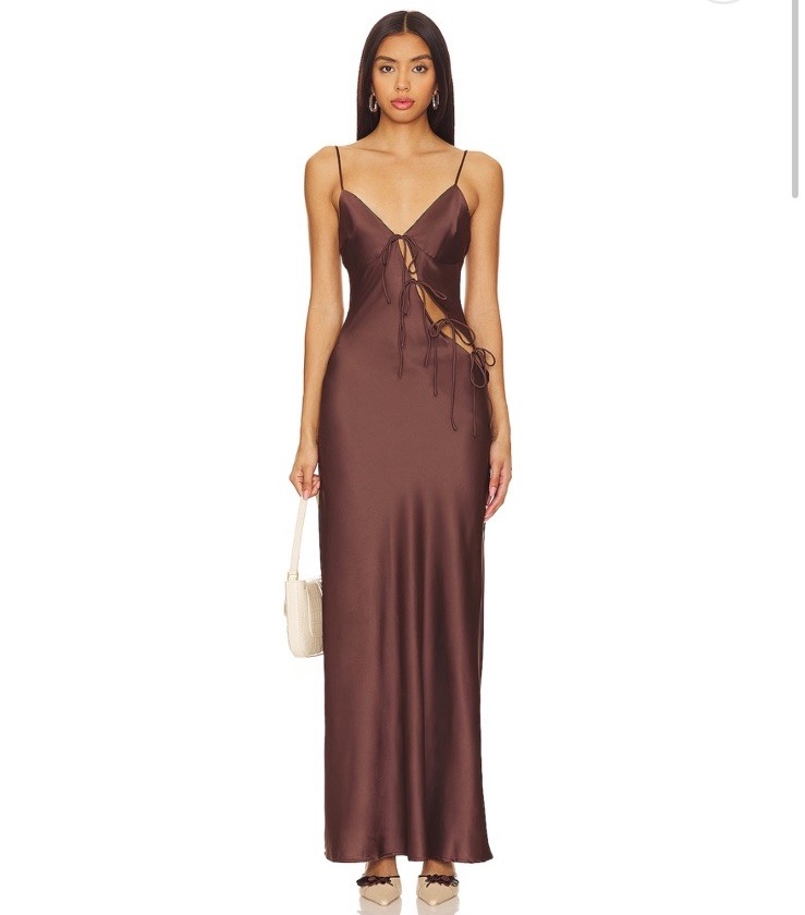 The product is a new without tags Lioness maxi dress in size XS. It features a brown color and a long length, ideal for a stylish and comfortable outfit for women. The dress is perfect for a casual or dressy occasion, showcasing the brand's unique style and attention to detail.