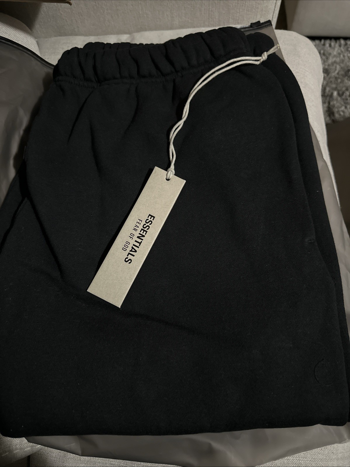 The NWT Fear of God Jet Black Sweatpants in size M are a versatile and stylish addition to any activewear collection. Made from comfortable cotton material, these solid black sweatpants feature a drawstring closure and an elastic waist for a secure fit. Perfect for fall, winter, or spring, these sweatpants are ideal for walking or everyday wear. The Fear of God brand adds a touch of high-end style, while the machine washable design makes them easy to care for. Perfect for both men and women, these sweatpants are a must-have for any fashion-forward individual looking for a blend of comfort and style.