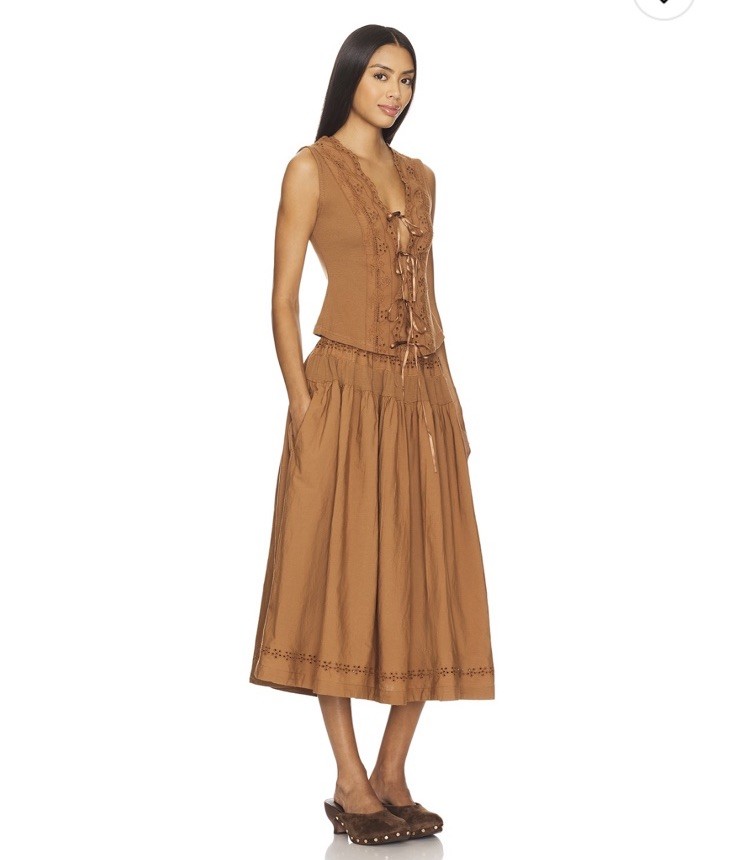 The Free People Gisebelle Set in size XS is a stylish outfit/set designed for women. Featuring a versatile brown color, this set includes apparel items from the popular brand Free People. Made for the modern woman, this set offers a coordinated and fashionable option for everyday wear or a night out. The size XS ensures a tailored fit for those looking for a more petite silhouette.