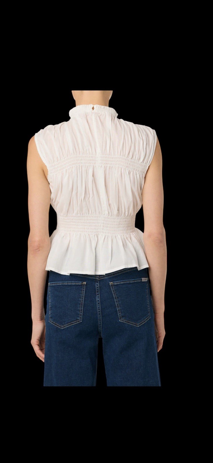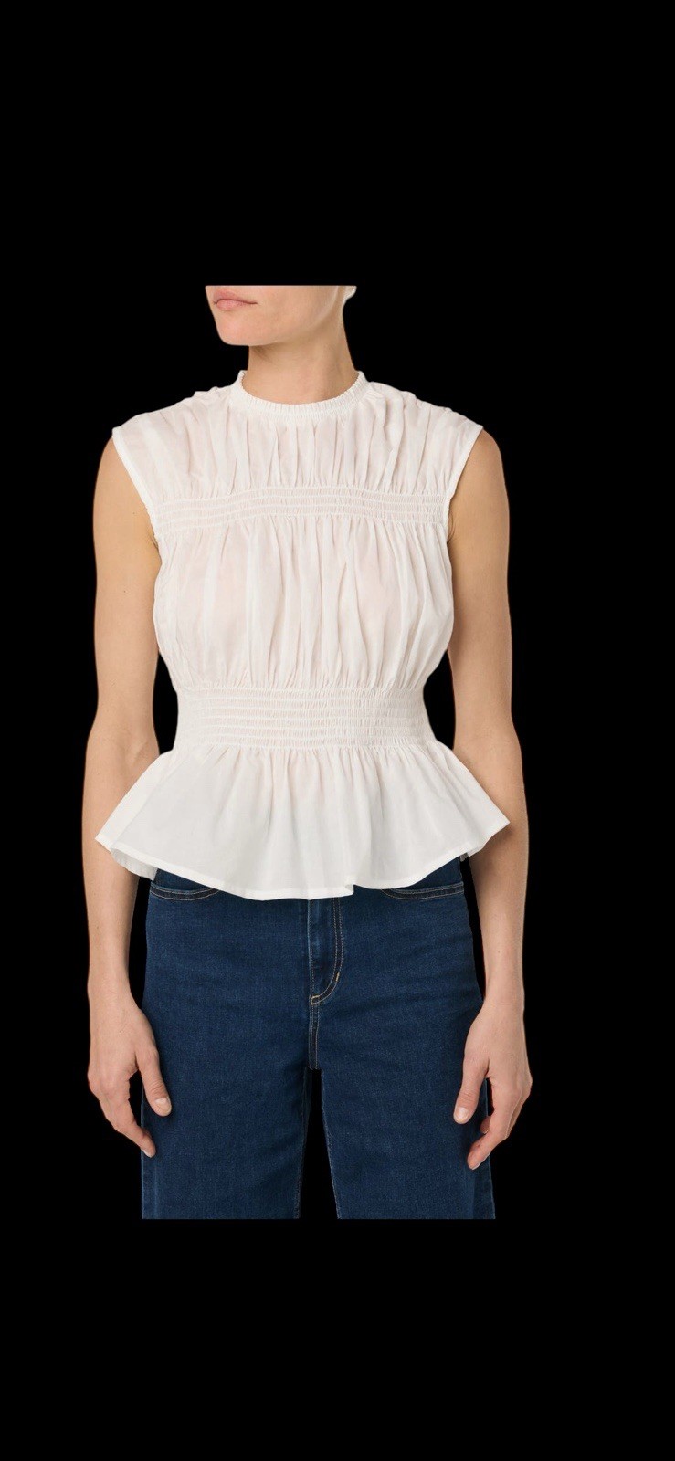 Embrace sunny days in this sleeveless cotton voile top fashioned with gathered smocking and a ruffled peplum.