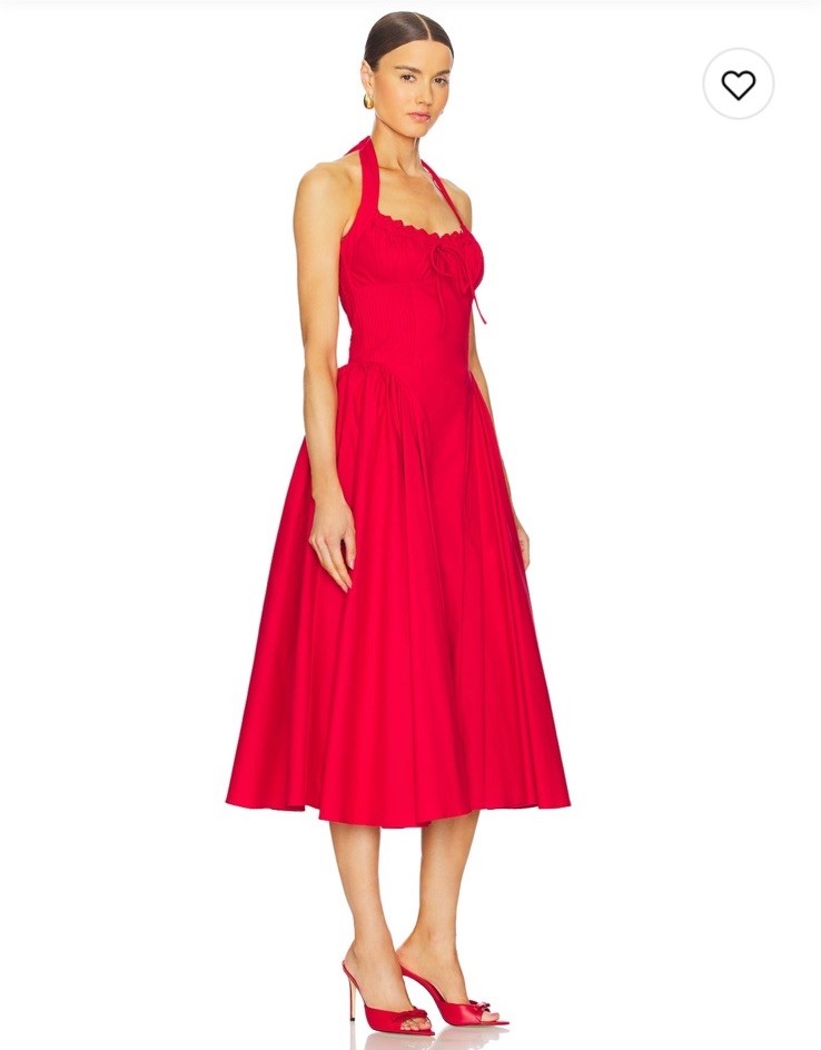 The NWT Line And Dot Abbott Halter Midi Dress in size XS is a stylish fit and flare dress perfect for women. The dress features a halter neckline, lined interior, and a midi length, making it suitable for various occasions. The vibrant red color adds a pop of color to any wardrobe, making it a versatile piece for any fashion-forward individual. Made by Line And Dot, known for their quality and design, this dress is sure to make a statement.