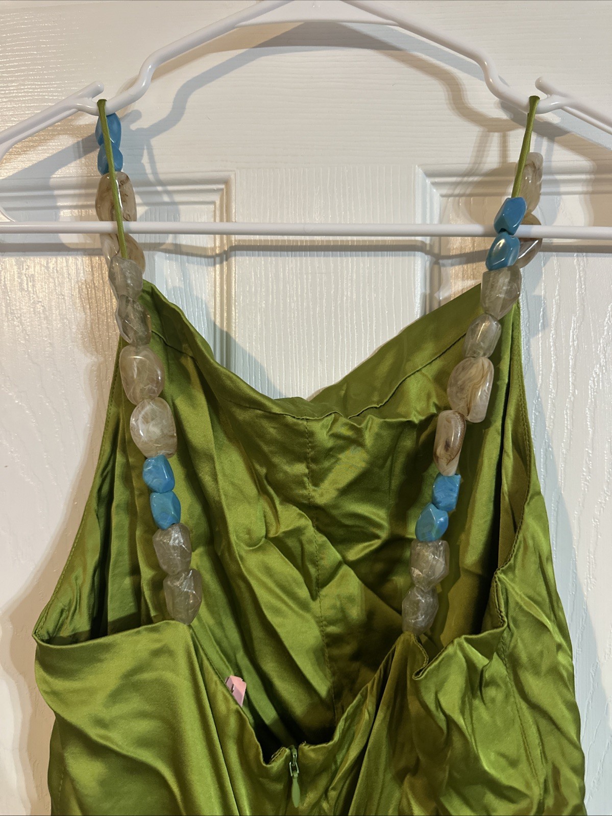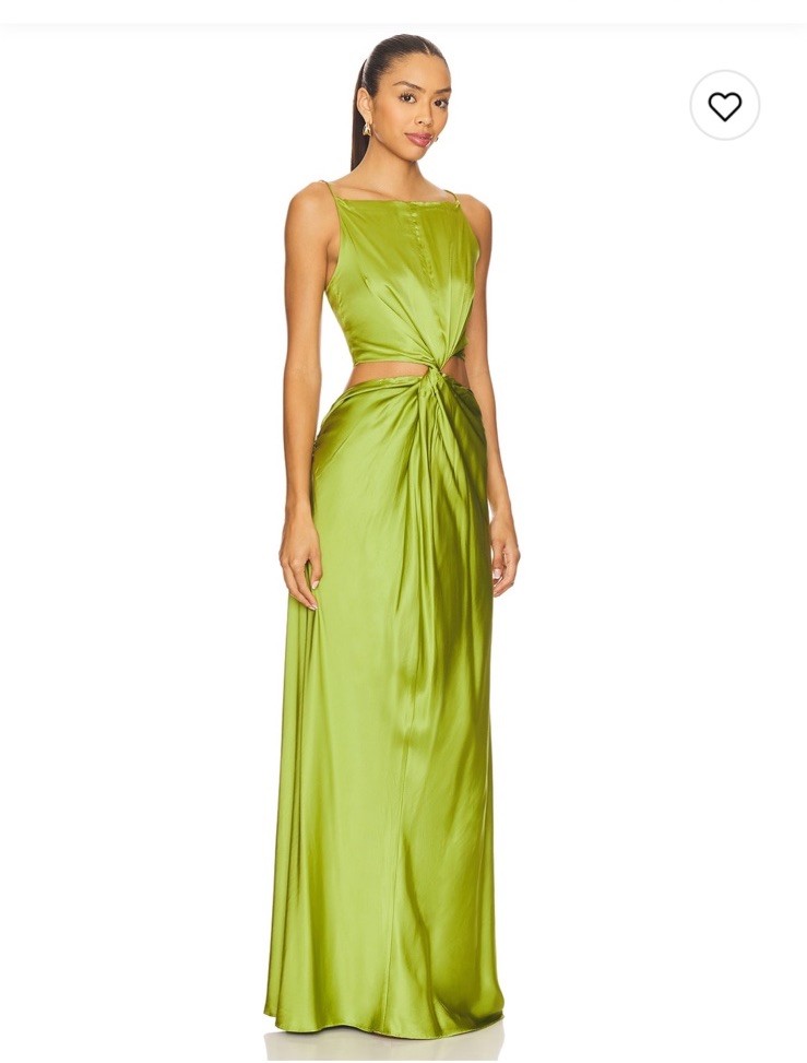 The NWT Lovers and Friends Diamanto gown is a stylish maxi dress designed for women in size S. The dress features a flattering long length and a beautiful green color, perfect for various occasions. The brand Lovers + Friends is known for its trendy and high-quality clothing, making this gown a great addition to any fashion-forward wardrobe.