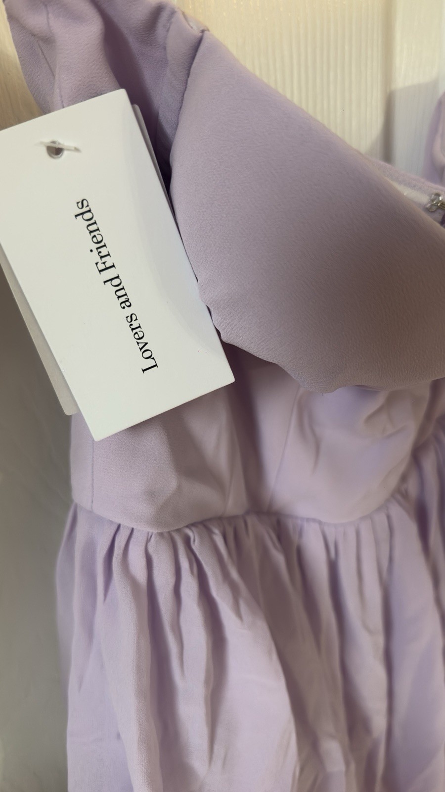 The NWT Lovers and Friends Hattie Gown in size S is a stunning maxi dress perfect for special occasions. With a beautiful purple color and a ball gown style, this long dress exudes elegance and sophistication. Made by the popular brand Lovers + Friends, this dress is sure to make a statement and turn heads wherever you go. Perfect for women looking to feel chic and stylish at their next event.