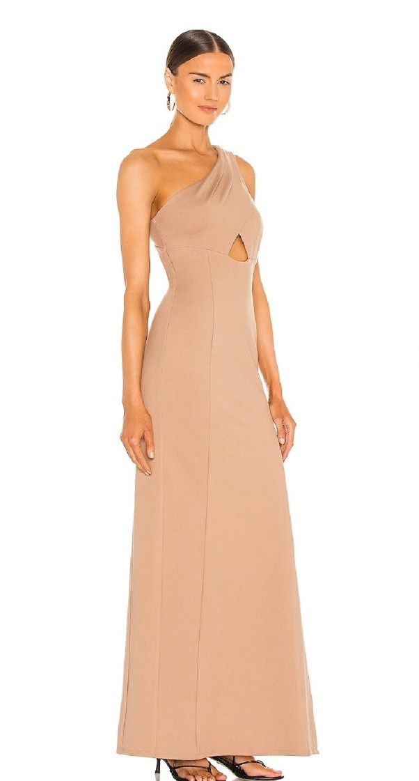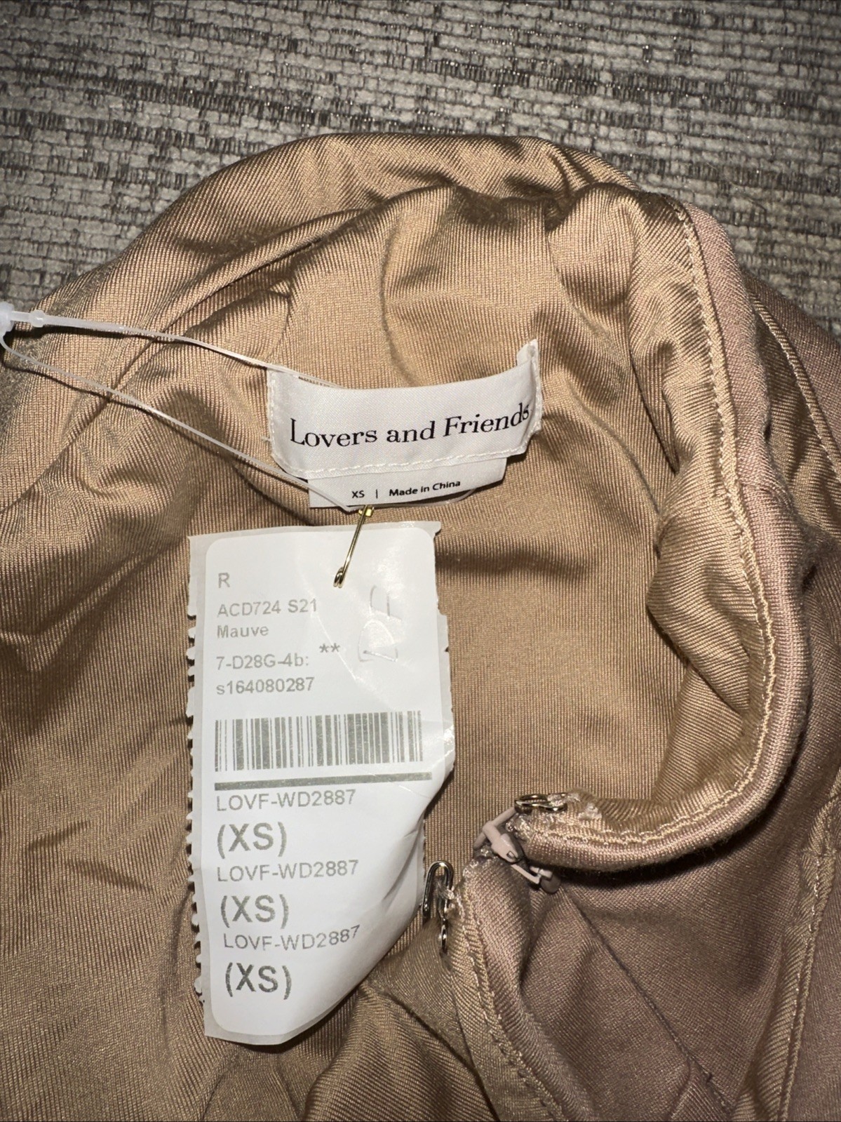The NWT Lovers and Friends Revolve Stacey Dress in size XS is a stylish and elegant option for formal occasions such as weddings or parties. This sleeveless, solid beige dress features a zip closure and a long length, making it perfect for a maxi or bodycon style. With a brand known for creating trendy pieces, this dress is sure to make a statement as a bridesmaid or wedding guest outfit.