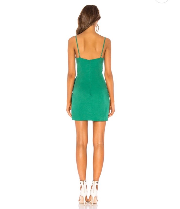 The NWT Lovers + Friends Ellis Mini Dress in size XXS is a stylish and trendy piece perfect for a party or cocktail occasion. The dress features a flattering button closure, ruched detailing, and a short mini length, making it a fashionable choice. The dress is in a vibrant green color, adding a pop of color to your wardrobe. Made with quality and attention to detail, this dress is sure to make a statement and turn heads wherever you go.