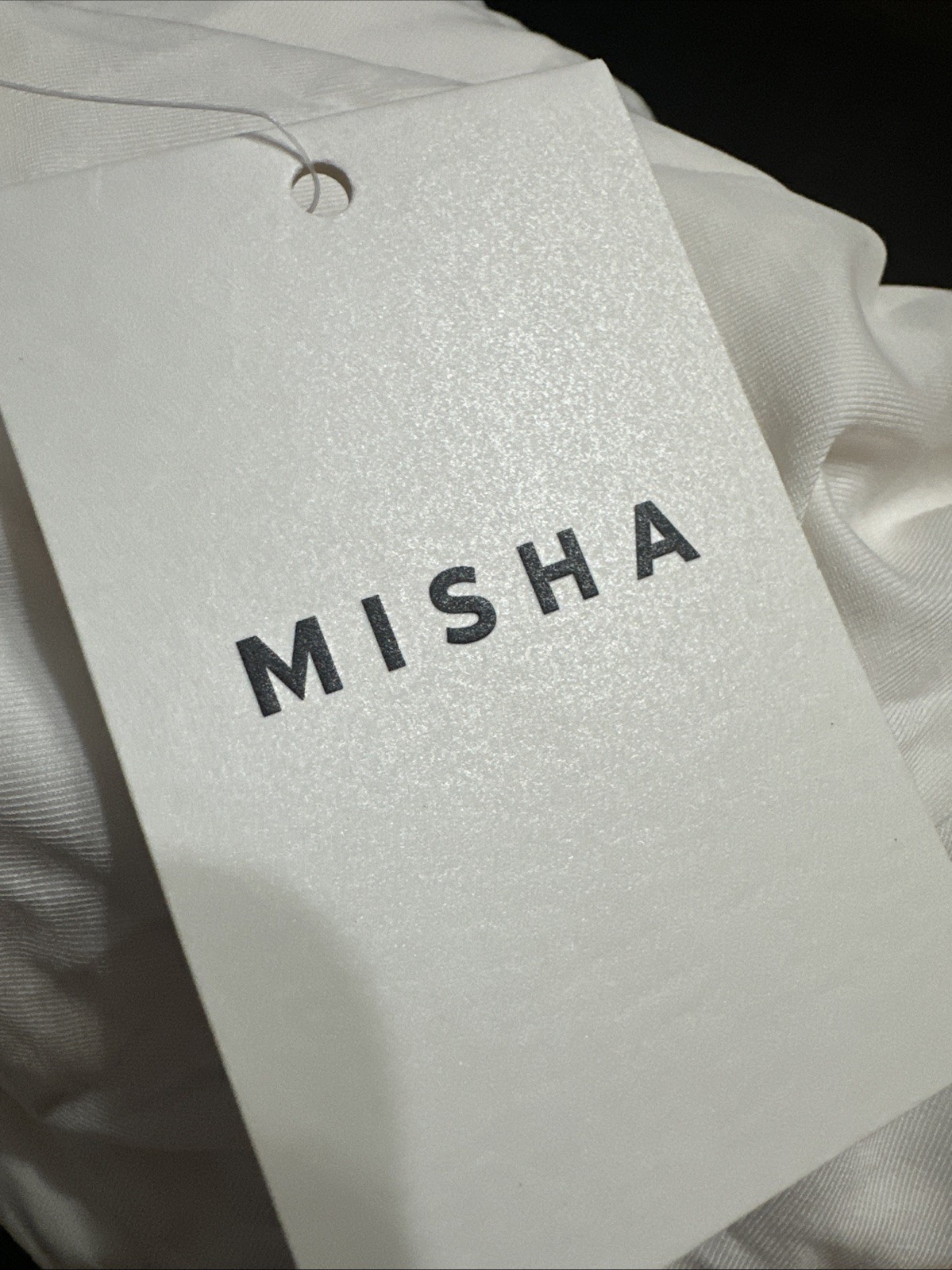 The NWT Misha Jennifer Maxi Dress in size L is a luxurious and elegant option for any special occasion. This ivory dress features a long length, making it a perfect choice for formal events or a sophisticated garden party. With its brand name known for quality and style, this dress is sure to make a statement and turn heads wherever you go. Perfect for women looking for a timeless and classy addition to their wardrobe.