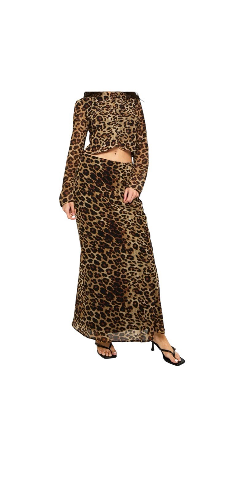 Flowing chiffon maxi skirt with bold leopard print pattern