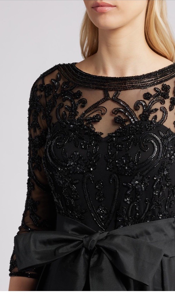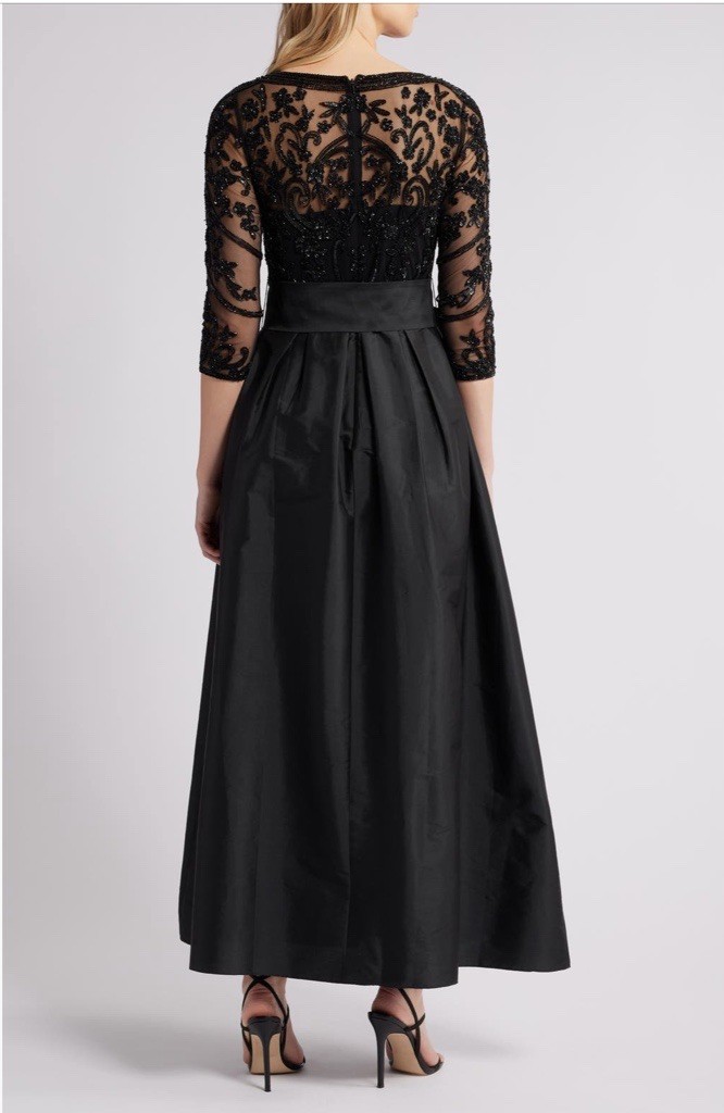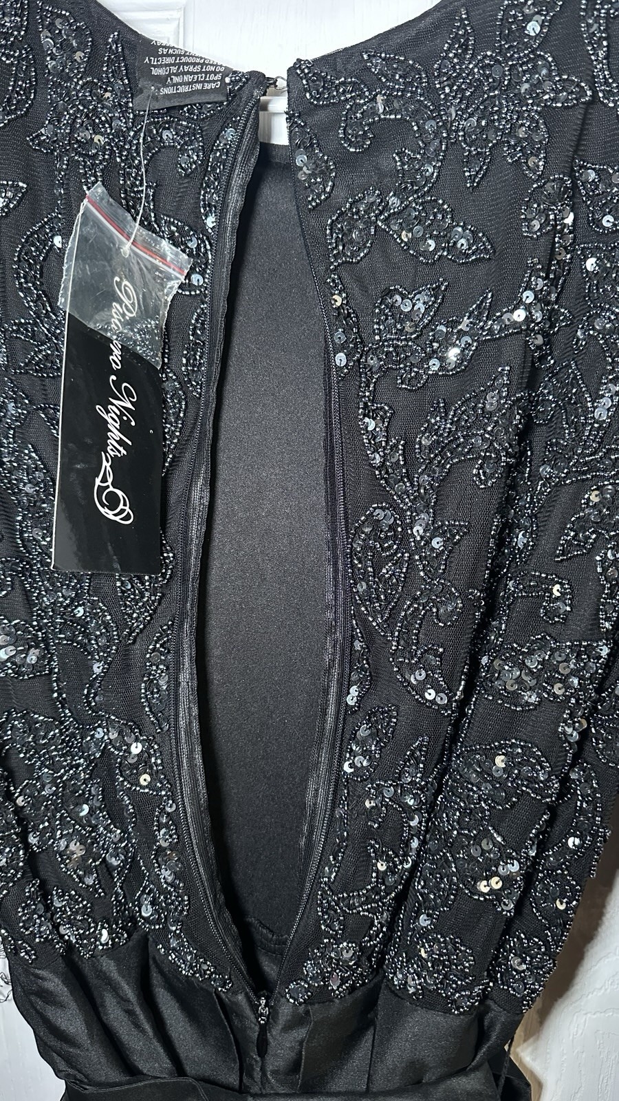 The NWT Pissaro Nights Beaded Taffeta Gown is a stunning black ball gown designed for women in size 12. The dress features intricate beading accents and a long length, making it a sophisticated and elegant choice for evening events. The brand, Pissaro Nights, is known for creating high-quality and stylish clothing, ensuring that this gown will make a statement at any formal occasion.