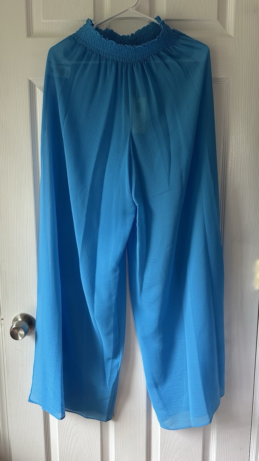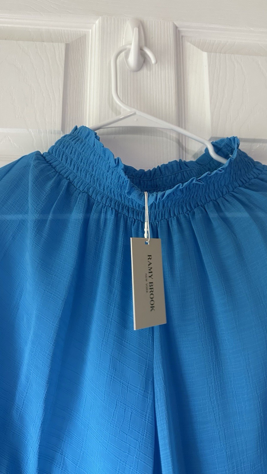 The NWT Ramy Brook Textured Athena Pool Pants are a stylish and versatile addition to any woman’s wardrobe. These casual pants feature a high rise and a regular fit, making them comfortable for everyday wear. The textured design adds a touch of interest to the solid blue color, while the polyester material is easy to care for with a dry clean only. Perfect for the summer and spring seasons, these pants are a must-have for any fashion-forward individual looking for a chic and trendy option.