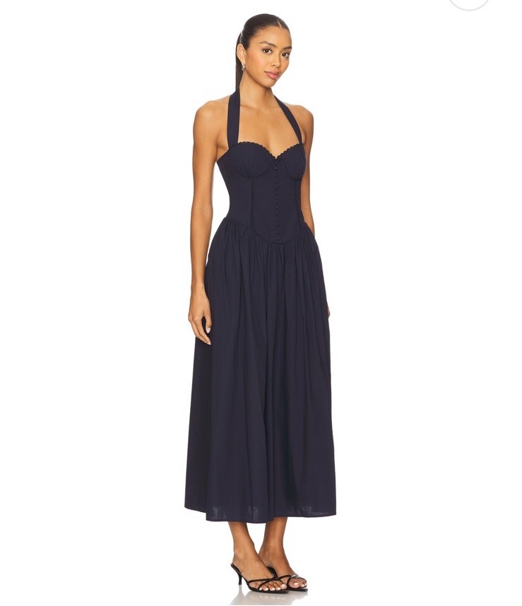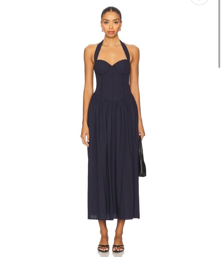 The NWT Runway The Label Adaline Midi Dress in Navy, size L, is a stylish and elegant choice for any woman's wardrobe. With its fit and flare style and midi length, this dress is perfect for a variety of occasions, from casual outings to more formal events. The deep navy blue color adds a sophisticated touch, making it a versatile piece that can be dressed up or down. Designed for regular sizing, this dress is sure to provide a comfortable and flattering fit for any woman who wears it.