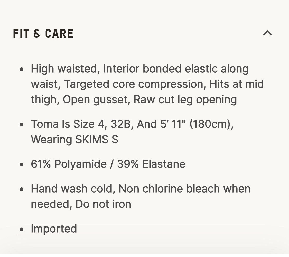 Toma Is Size 4, 32B, And 5′ 11″ (180cm), Wearing SKIMS S