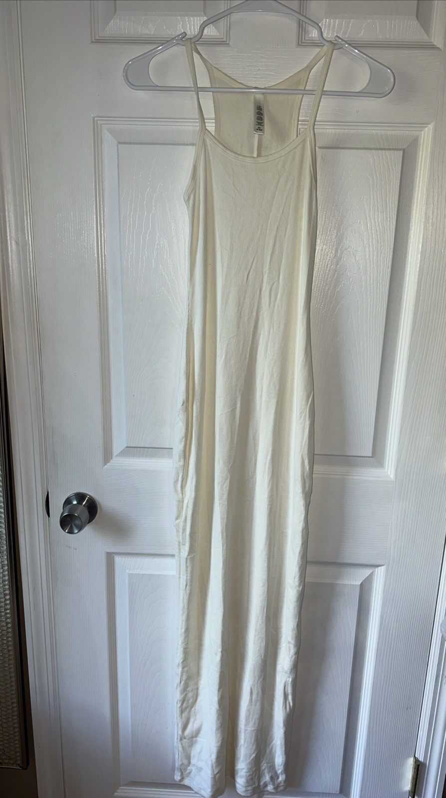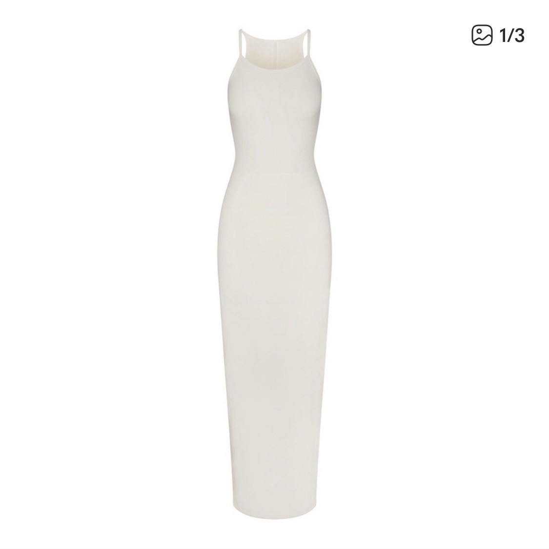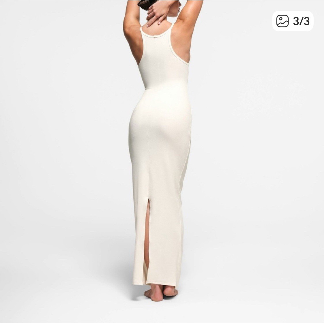 The NWT Skims Ribbed Tank Dress is a stylish and versatile piece of clothing designed for women. Made by the popular brand Skims, this dress features a flattering ribbed design in a chic ivory color. The long dress length and tank style offer a comfortable and elegant fit, while the XS size cater to those looking for a more tailored silhouette. Perfect for various occasions, this dress is a must-have for any woman's wardrobe.