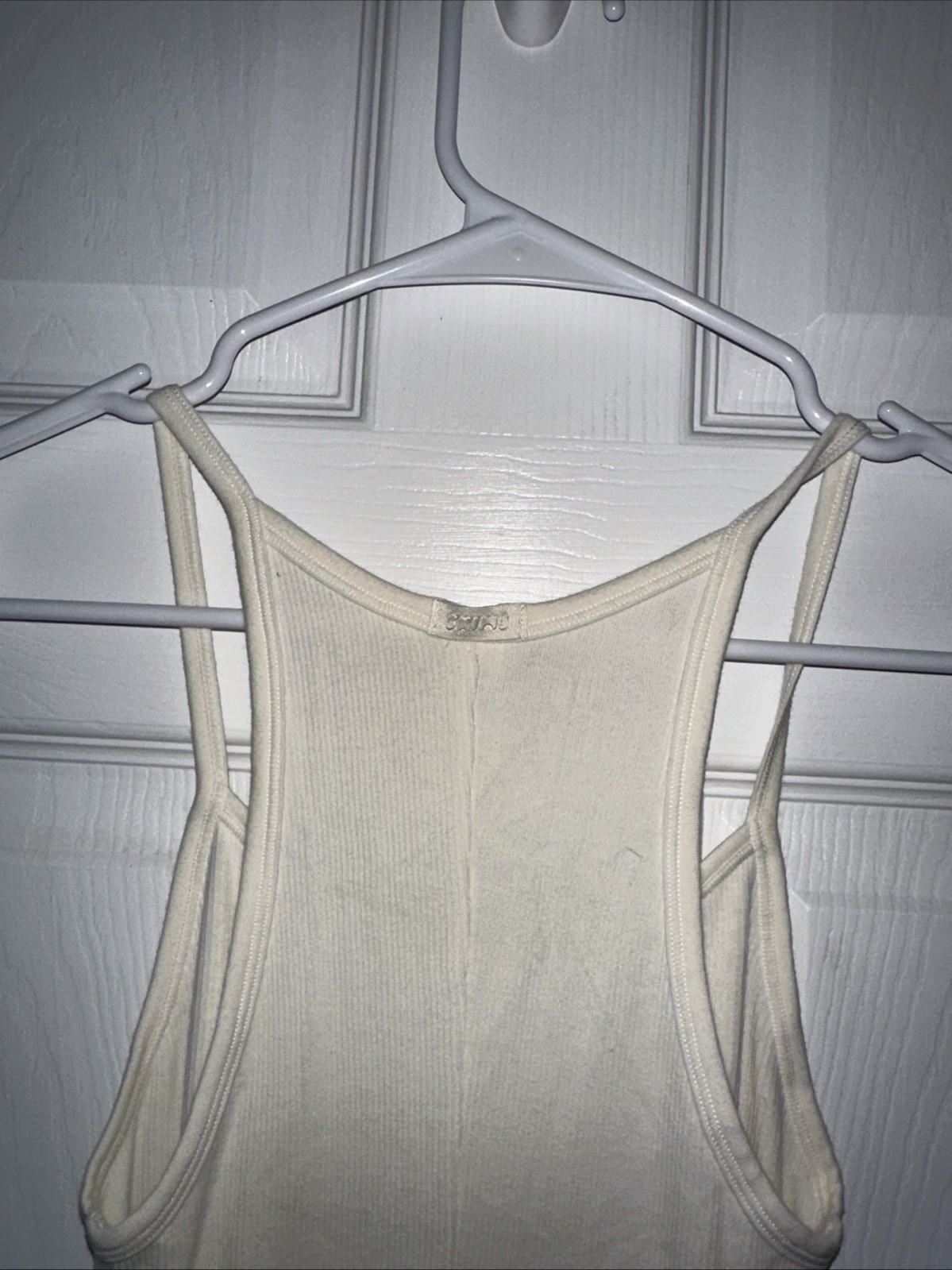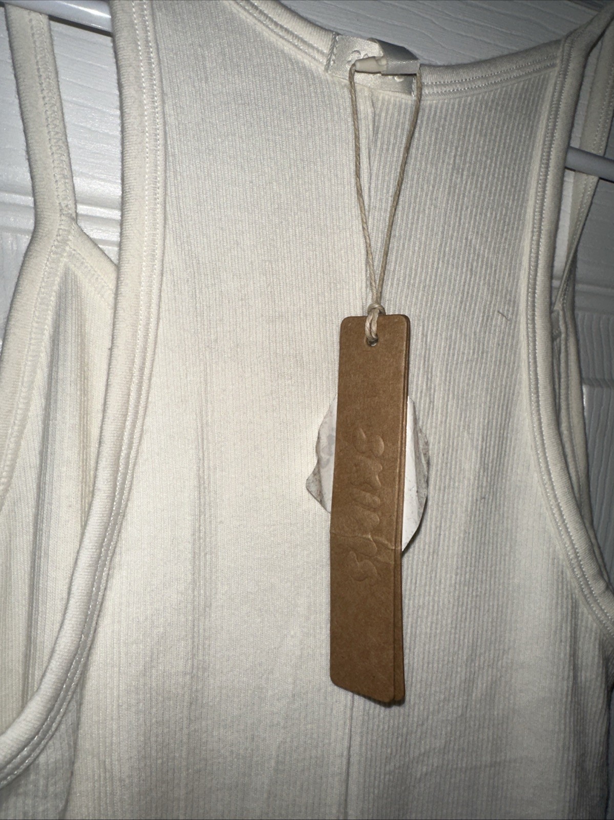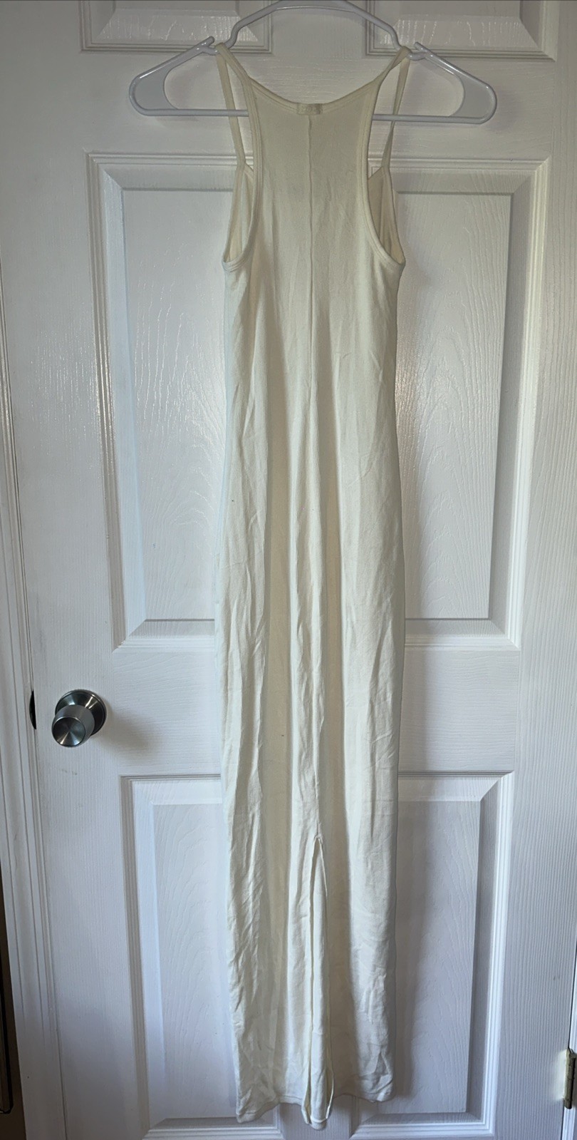 The NWT Skims Ribbed Tank Dress is a stylish and versatile piece of clothing designed for women. Made by the popular brand Skims, this dress features a flattering ribbed design in a chic ivory color. The long dress length and tank style offer a comfortable and elegant fit, while the XS size cater to those looking for a more tailored silhouette. Perfect for various occasions, this dress is a must-have for any woman's wardrobe.