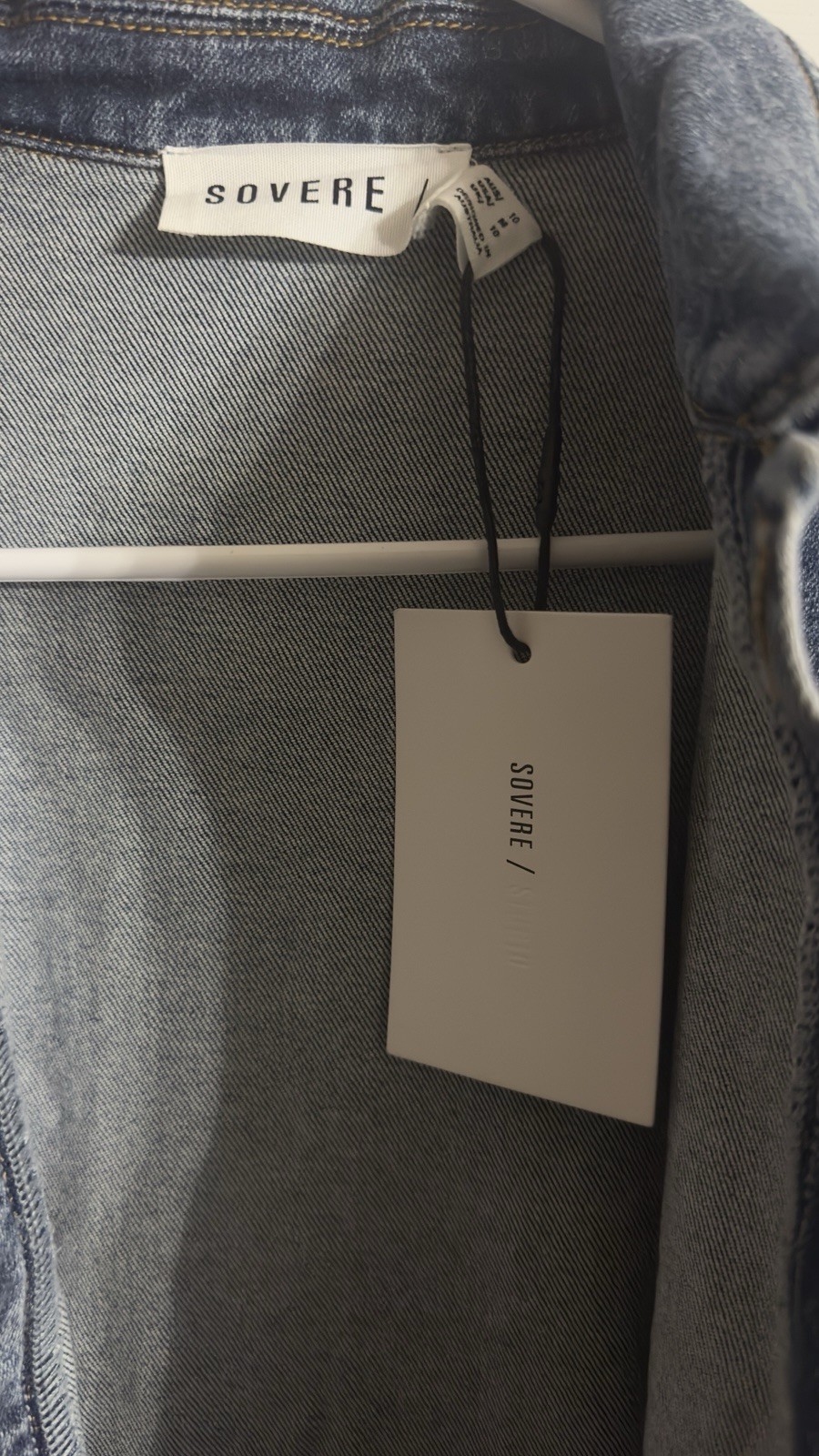 The NWT Sovere Dawn Denim Dress is a stylish and trendy mini shirt dress in a classic blue color. Made from denim fabric, this short dress is perfect for a casual yet fashionable look. With a size M and a regular fit, this dress is designed for women who appreciate both comfort and style. The brand Sovere ensures quality and attention to detail, making this dress a great addition to any wardrobe for a versatile and chic outfit option.