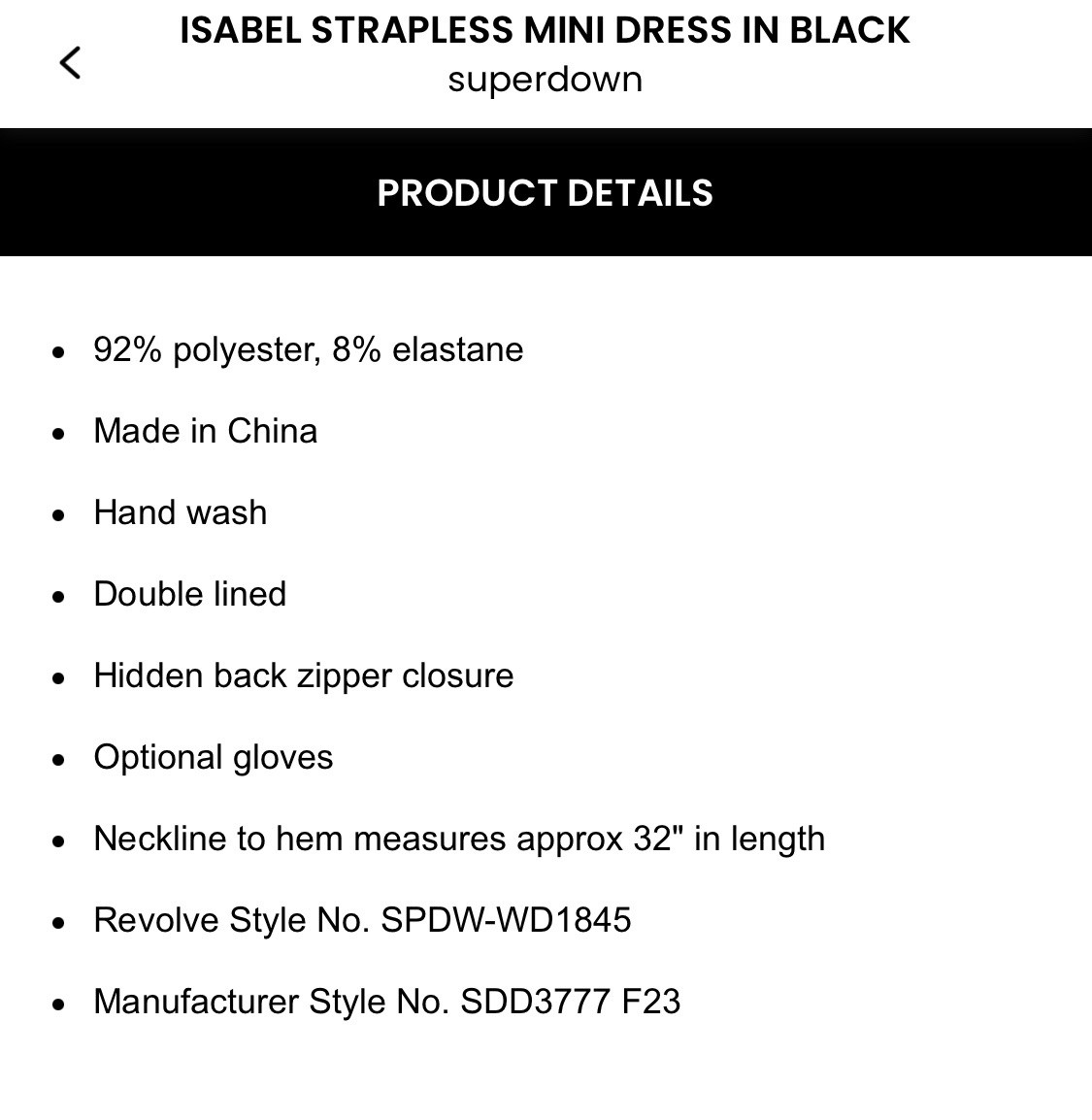 | DRESS LENGTH | Short |