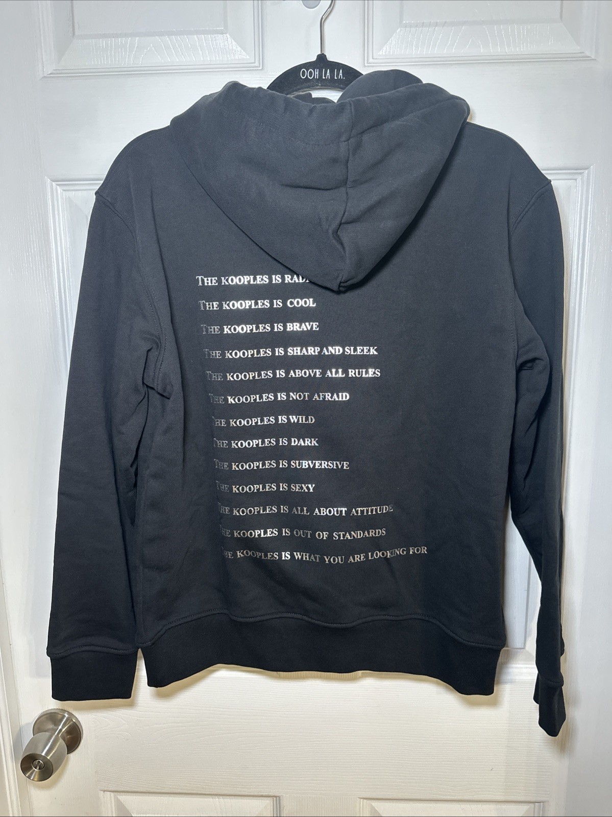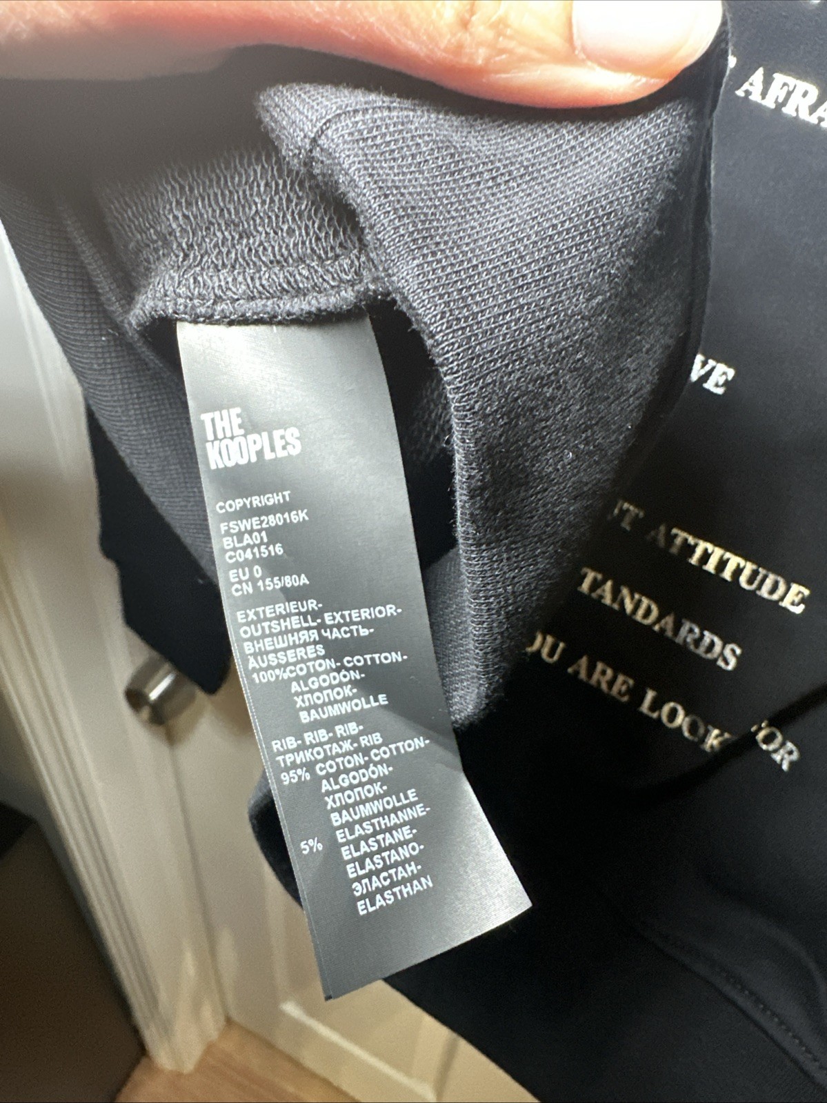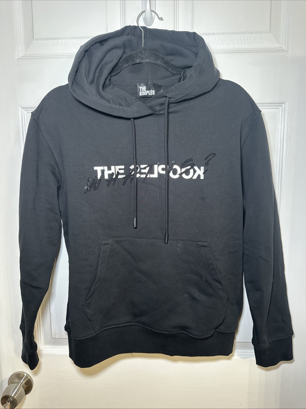 The NWT The Kooples Black Hoodie in size 0 is a stylish and versatile activewear piece perfect for women. This pullover hoodie features a classic black color, making it easy to mix and match with different outfits. With its regular fit and high-quality construction, this hoodie is sure to become a staple in any woman's wardrobe. Perfect for casual outings or working out, this hoodie combines fashion and functionality for a chic look.