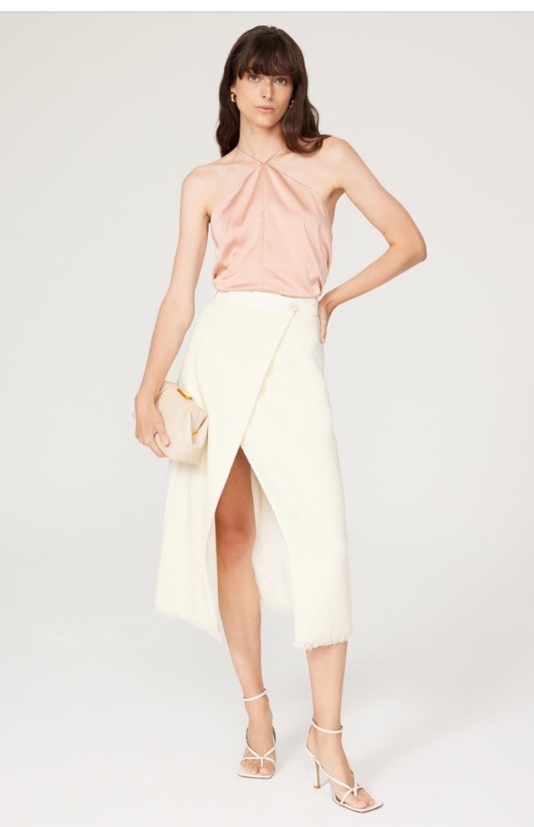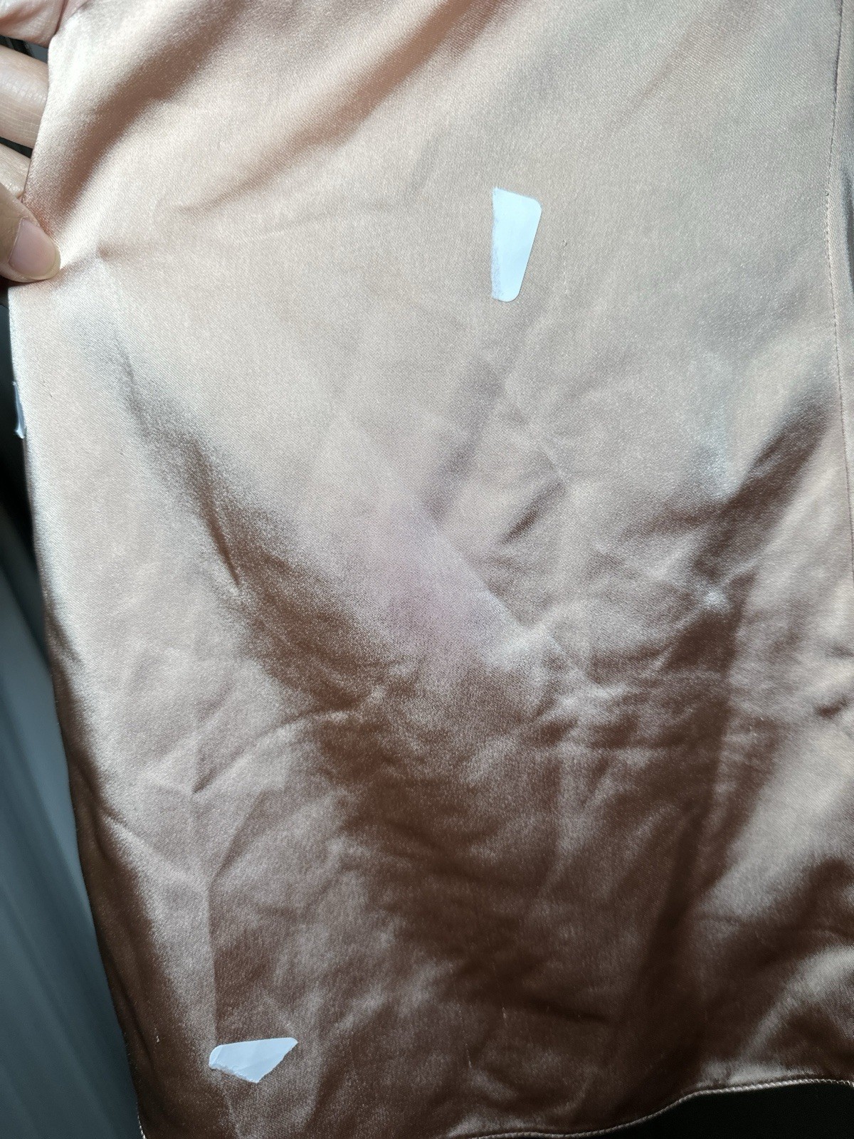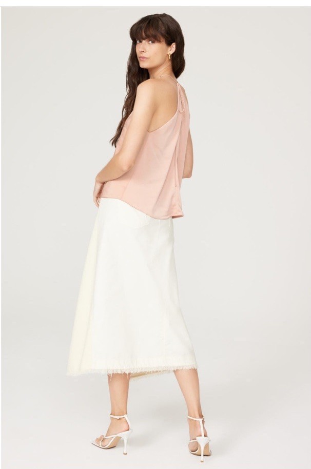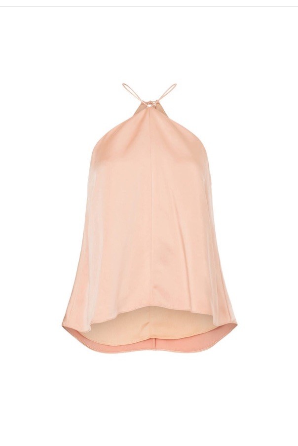 The Obando X RTR Sleeveless Halter Top in size 6 is a stylish and elegant blouse perfect for a wedding or party. Made from satin fabric in a solid tan color, this top features a high neck with a tie closure and strappy sleeves. The bow detail adds a touch of sophistication to the designer piece, making it a must-have addition to any woman's wardrobe for special occasions. This top should be dry cleaned only to maintain its quality and appearance.