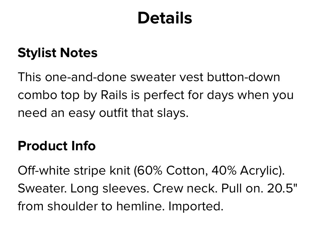 The Rails Bambi Knit Sweater Top in size L is a stylish and versatile piece perfect for various occasions such as travel, parties, casual wear, and workwear. This pullover sweater features a classic crew neck design with button accents and a striped pattern, making it a timeless addition to any wardrobe. Made from a blend of cotton, cotton blend, and acrylic, this lightweight and breathable sweater is ideal for the winter, fall, and spring seasons. Machine washable for easy care, this sweater by Rails offers a comfortable regular fit for women looking for a classic yet trendy look.