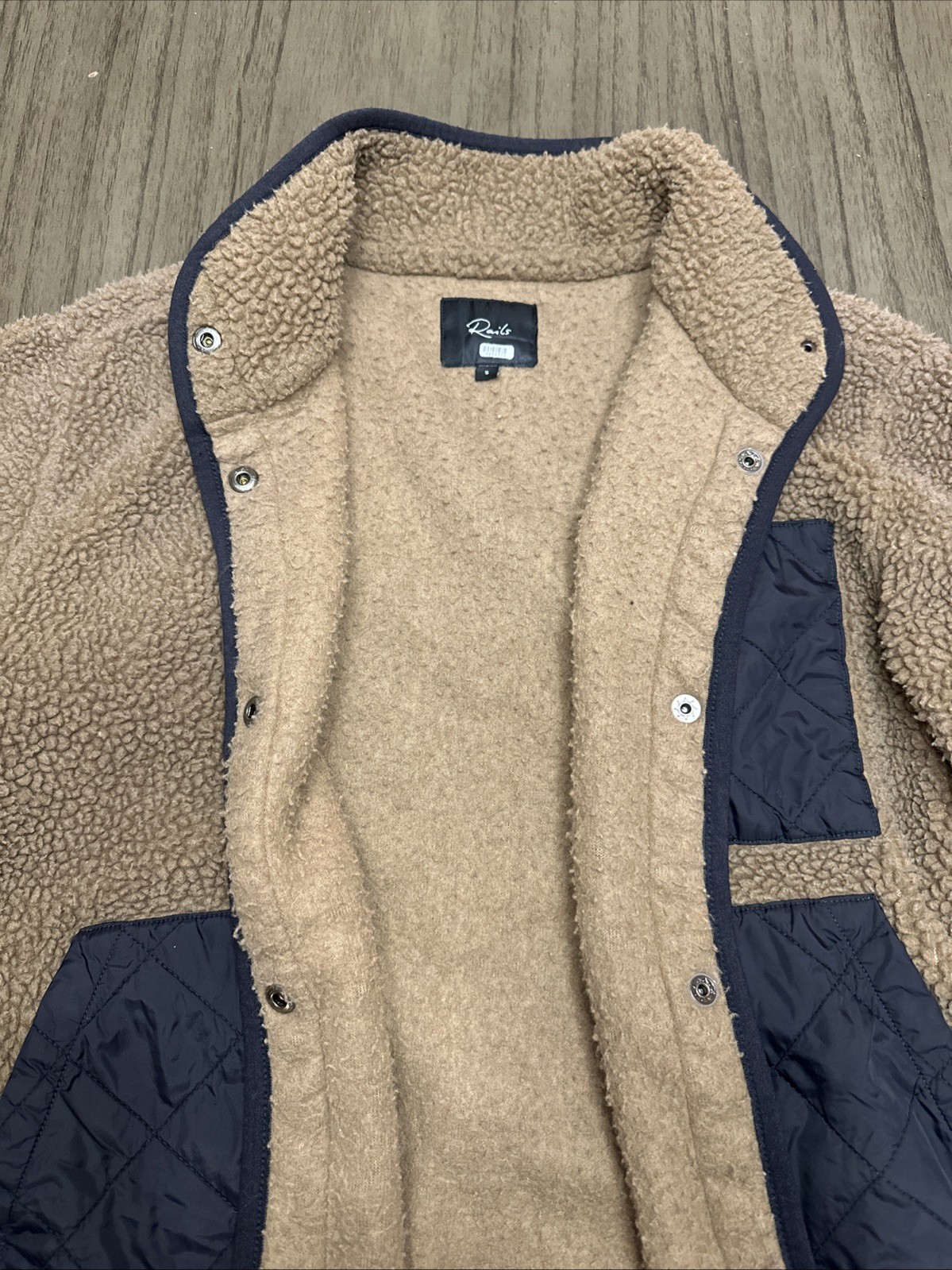 The Rails Lorna Sherpa Fleece Jacket in Brown is a stylish and cozy outerwear option for women in size small. Made from polyester fleece, this jacket provides warmth and comfort while maintaining a fashionable look. The brown color adds a versatile touch to any outfit, and the regular size ensures a good fit for everyday wear. Perfect for layering in cooler weather, this fleece jacket from Rails is a must-have for any woman's winter wardrobe.