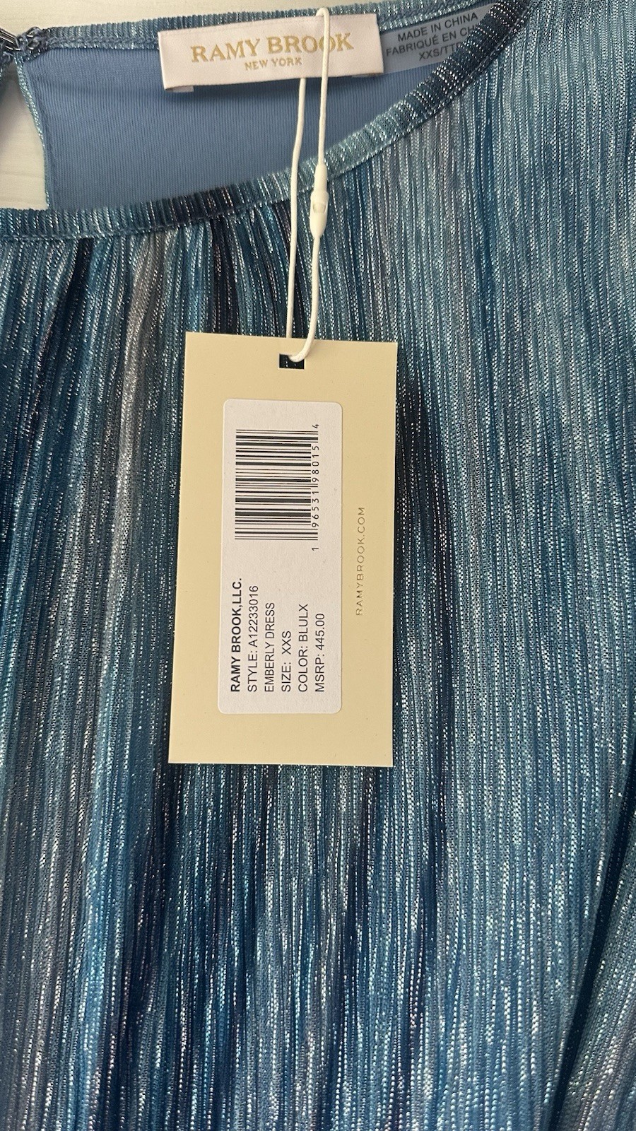 The Ramy Brook Metallic Blue Midi Dress is a stylish and elegant piece perfect for weddings, parties, or cocktails. This dress features a solid blue color with a metallic theme, short sleeves, and a flattering V-neckline. Made from ramie material, this dress is designed in a midi length, making it a versatile and on-trend option for the summer and spring seasons. The brand, Ramy Brook, is known for its quality and chic designs, making this dress a standout choice for any fashion-forward woman.