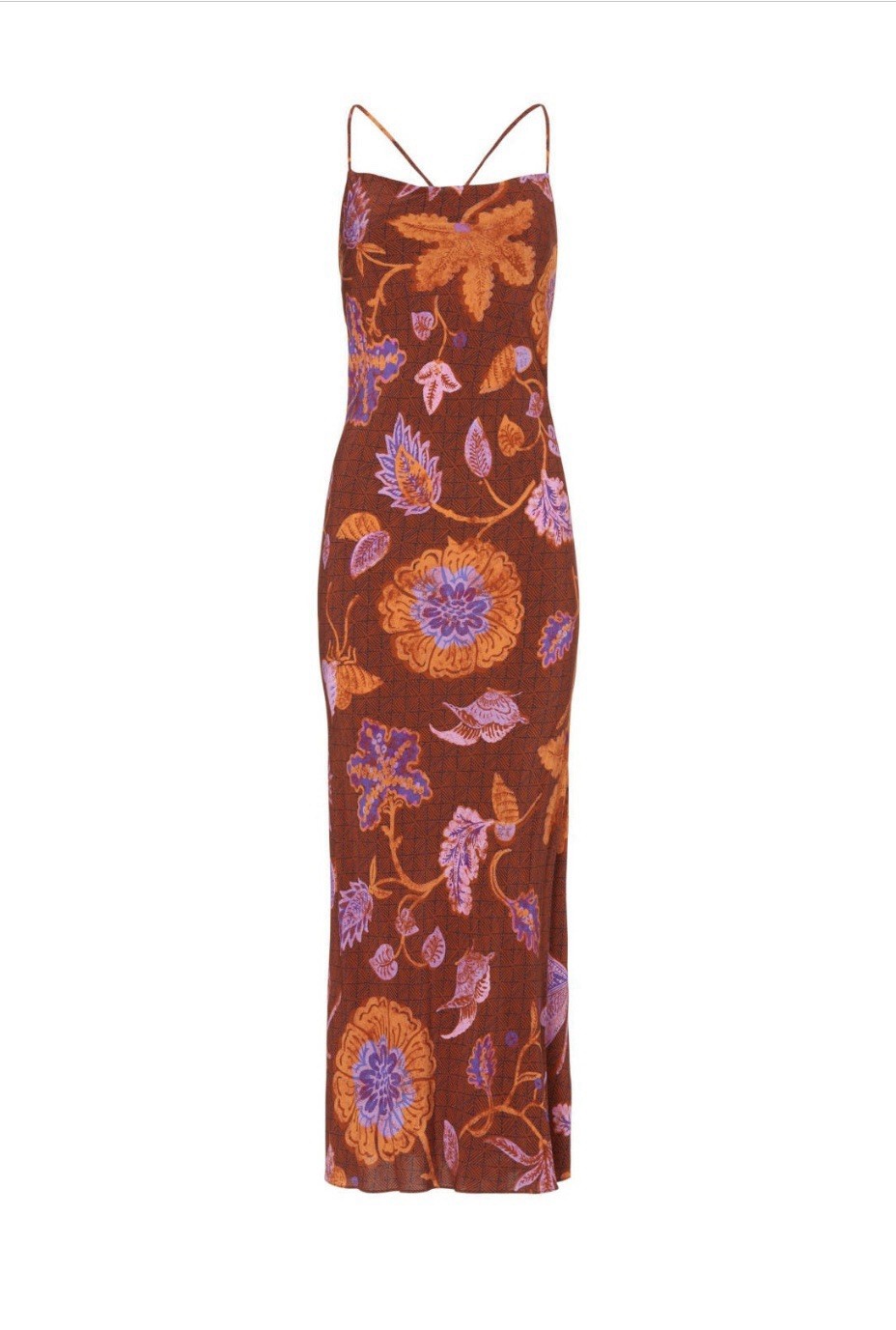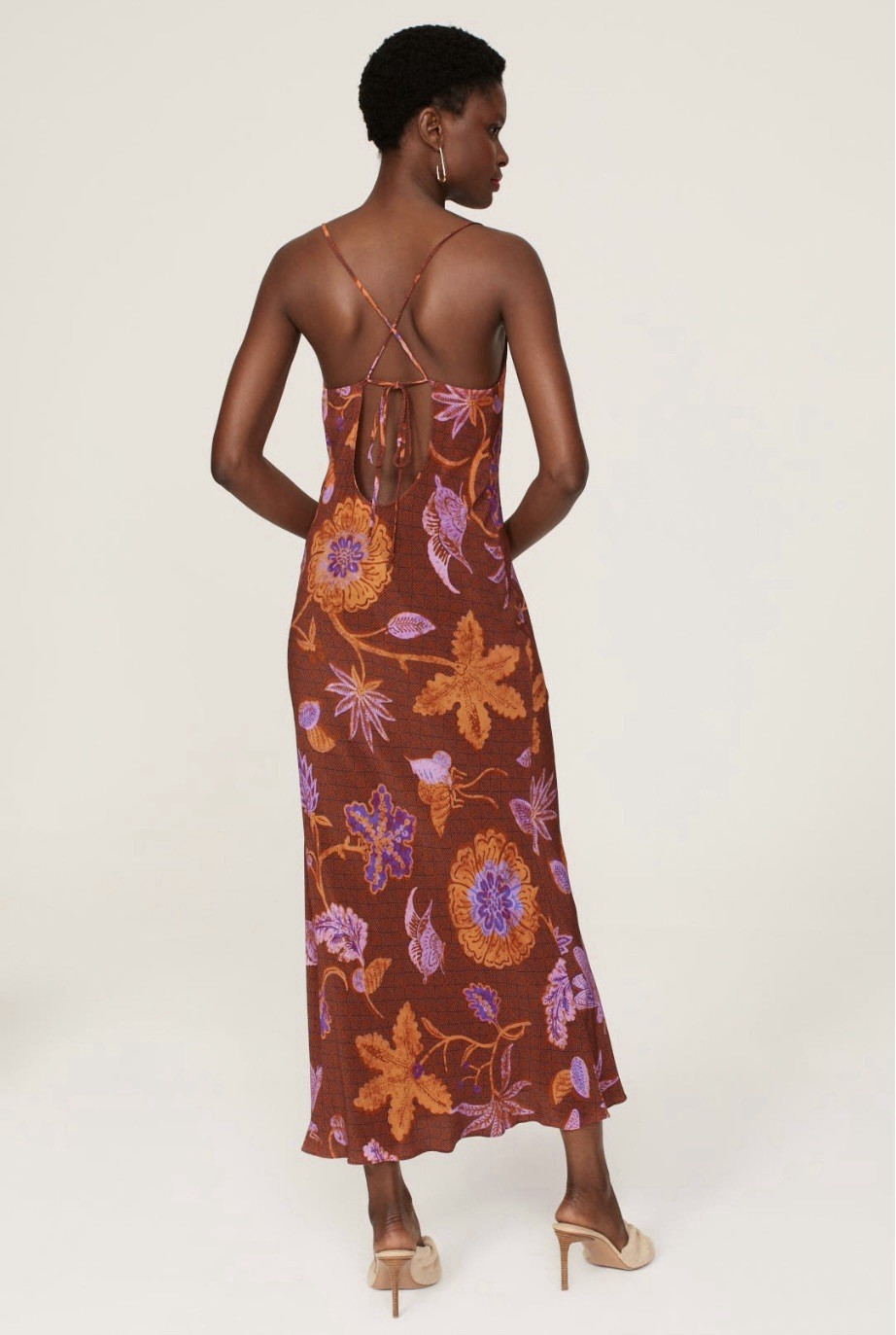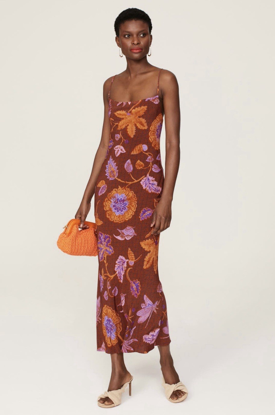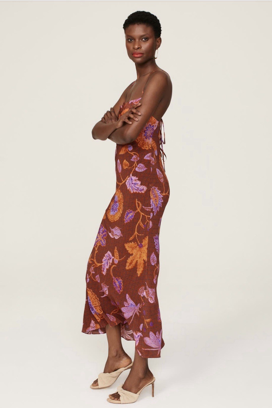The Rhode Jemima Dress in Clove is a stunning slip dress made of viscose material, featuring a beautiful floral pattern in a multicolor design. This long dress has a cowl neck and sleeveless style, making it suitable for various occasions including travel, parties, casual wear, and formal events. With a regular size 8 fit, this dress exudes elegance and sophistication, perfect for any fashion-forward woman looking to make a statement with their outfit.