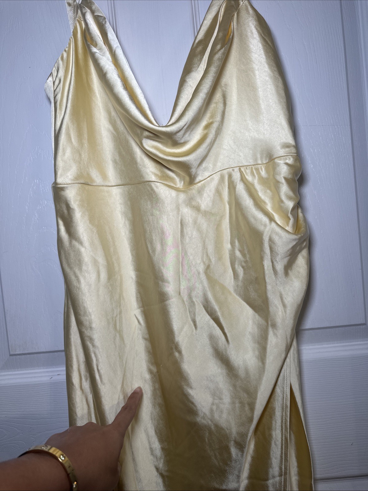 The Runway The Label Havanna Dress is a stylish and elegant A-Line and mermaid dress in a vibrant yellow color. This long dress is designed for women in size small, making it a perfect choice for a special occasion or evening event. With its flattering silhouette and brand known for quality and attention to detail, this dress is sure to make a statement and turn heads wherever you go.