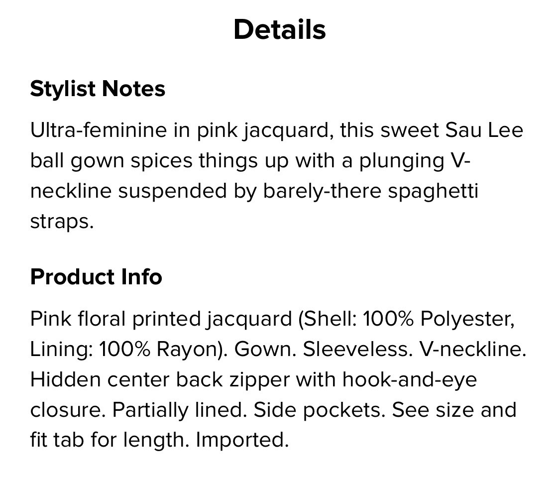 The Sau Lee Ada Gown is a stunning pink ball gown designed for women. This long dress is in size four and features a regular fit, making it a perfect choice for special occasions or formal events. The intricate detailing and elegant style of this gown will surely make a statement and turn heads wherever you go.