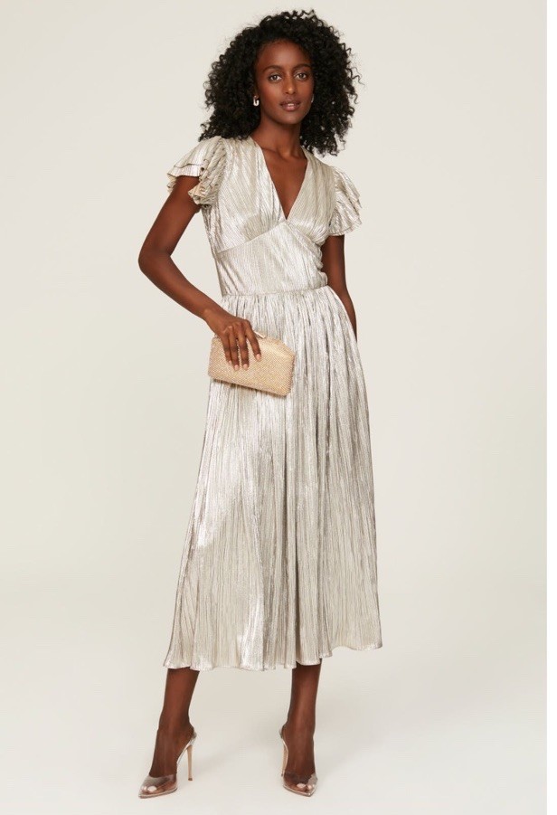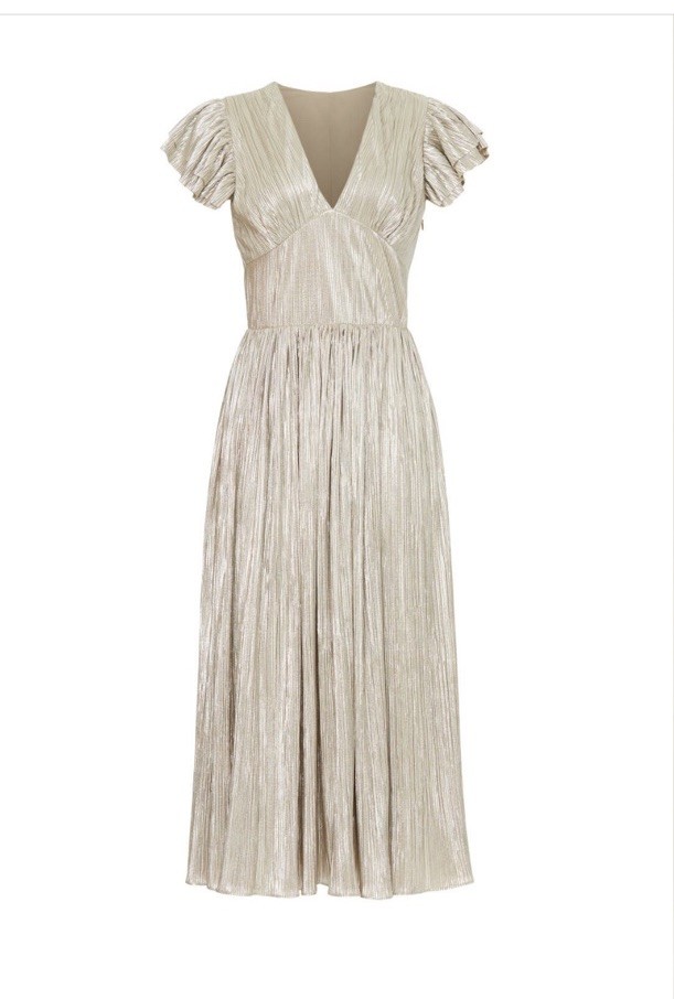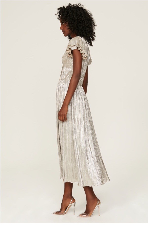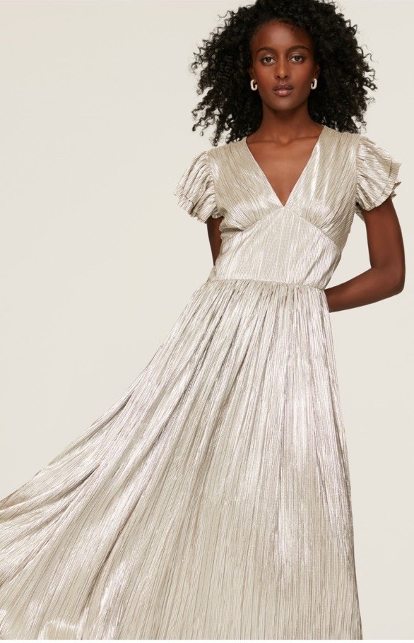 Shoshanna Hera Plisse Metallic Maxi Dress Msrp $595 Size8