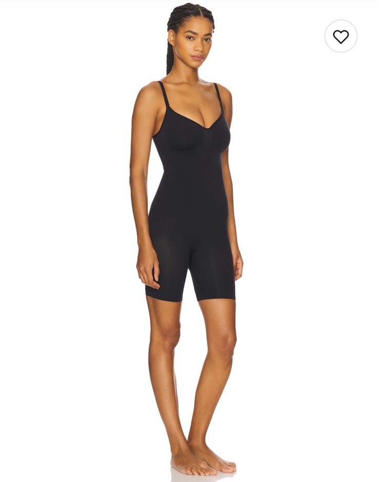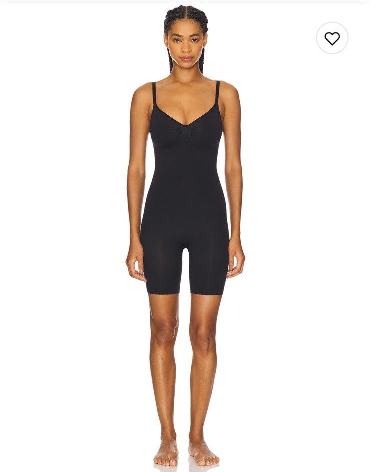 The Skims Seamless Sculpt Mid Thigh Bodysuit in Onyx is a high-quality shapewear piece designed for women in size M. Made with seamless technology, this one-piece bodysuit offers a comfortable and slimming fit while providing support and contouring. The black color adds a sleek and versatile touch to this essential undergarment from the trusted brand Skims. Perfect for various occasions, this bodysuit is a must-have for any woman looking to enhance her figure and achieve a seamless look.
