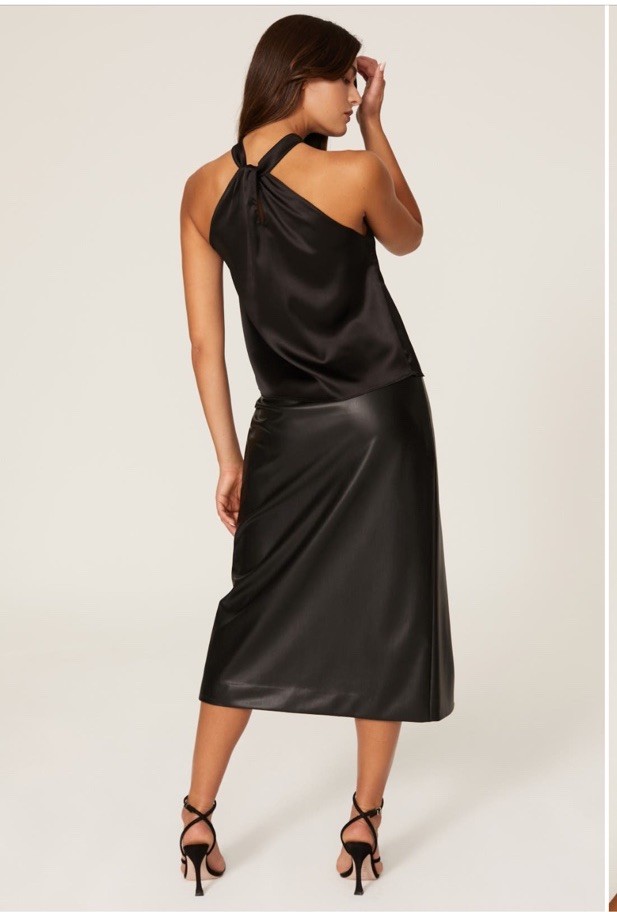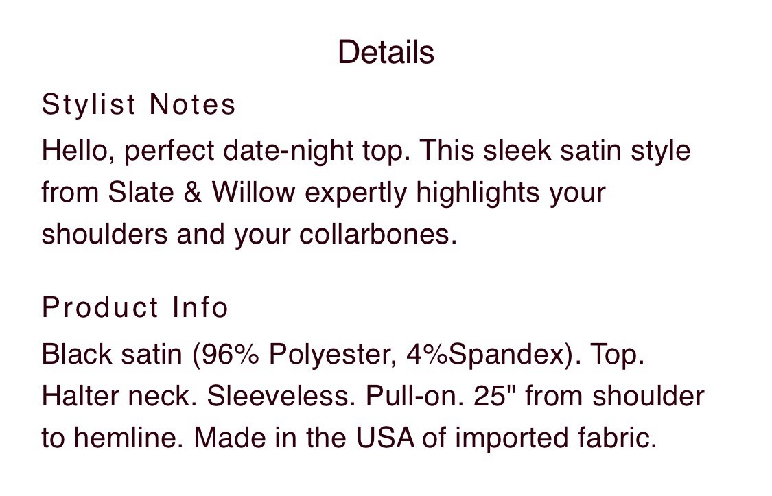 The Slate And Willow Black Satin Halter Top in size M is a stylish blouse designed for women. The sleek satin fabric and classic halter style make it a versatile and elegant addition to any wardrobe. Perfect for pairing with jeans or a skirt, this top offers a sophisticated look that is sure to make a statement.