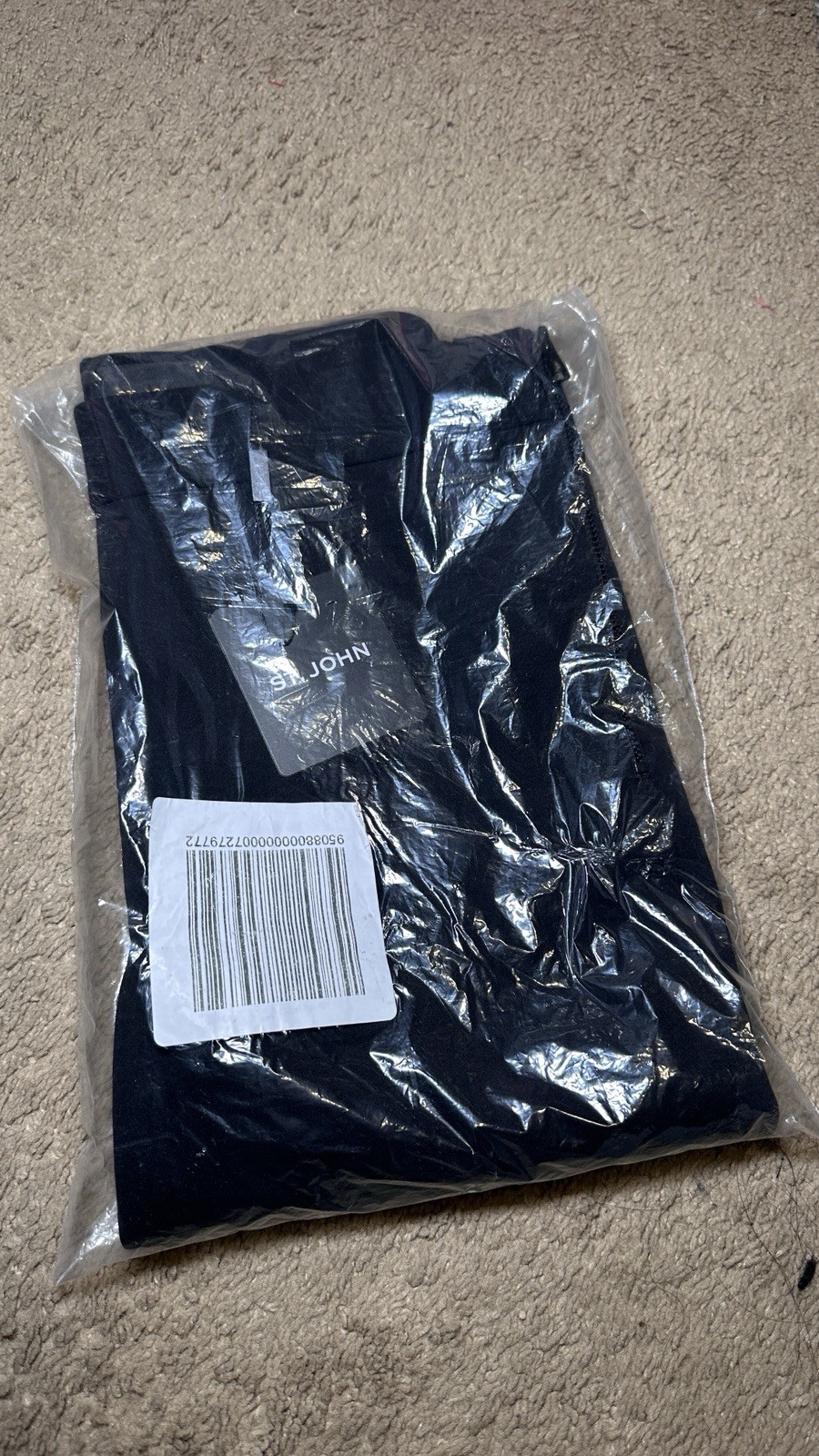 The St. John Black Pants are sleek and stylish dress pants designed for various occasions, from formal events to business meetings. Made from a knit fabric with a high rise, these pants feature a flat front and a straight leg design. The black color and solid pattern make them versatile for pairing with different tops and shoes. These pants, originating from the United States and recommended for dry clean only, are the perfect addition to any woman’s wardrobe for the winter, fall, or spring seasons.