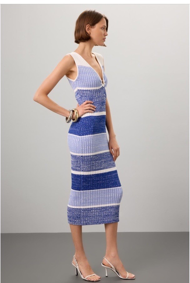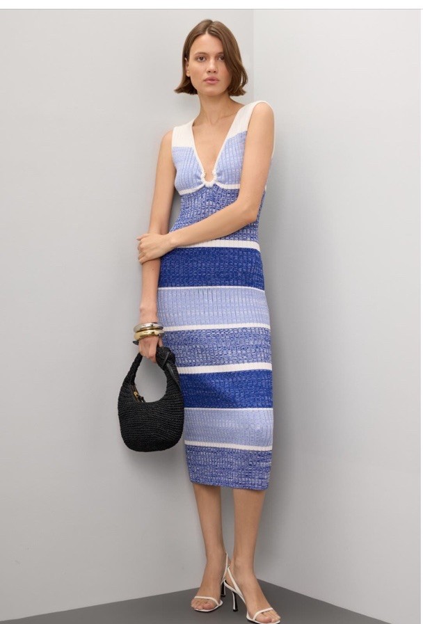 Toccin Sadie Sleeveless Striped Midi Dress Size L Msrp $395