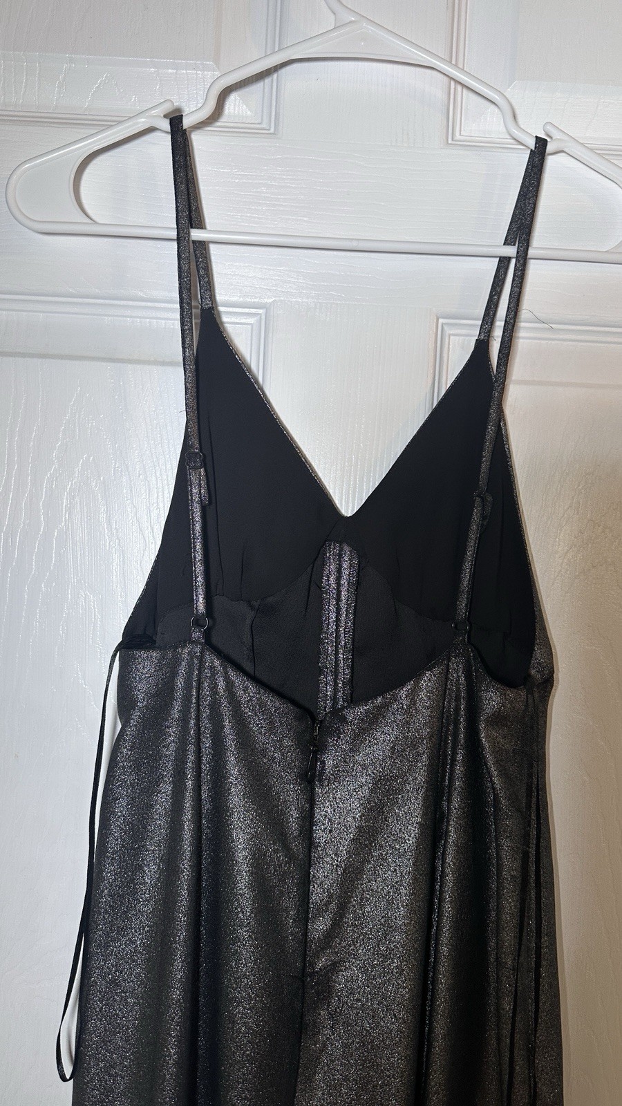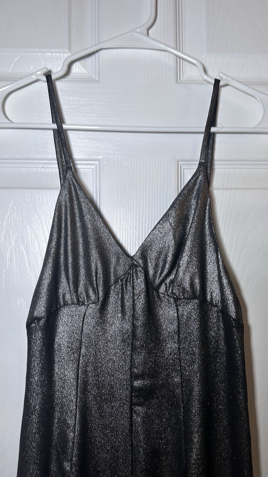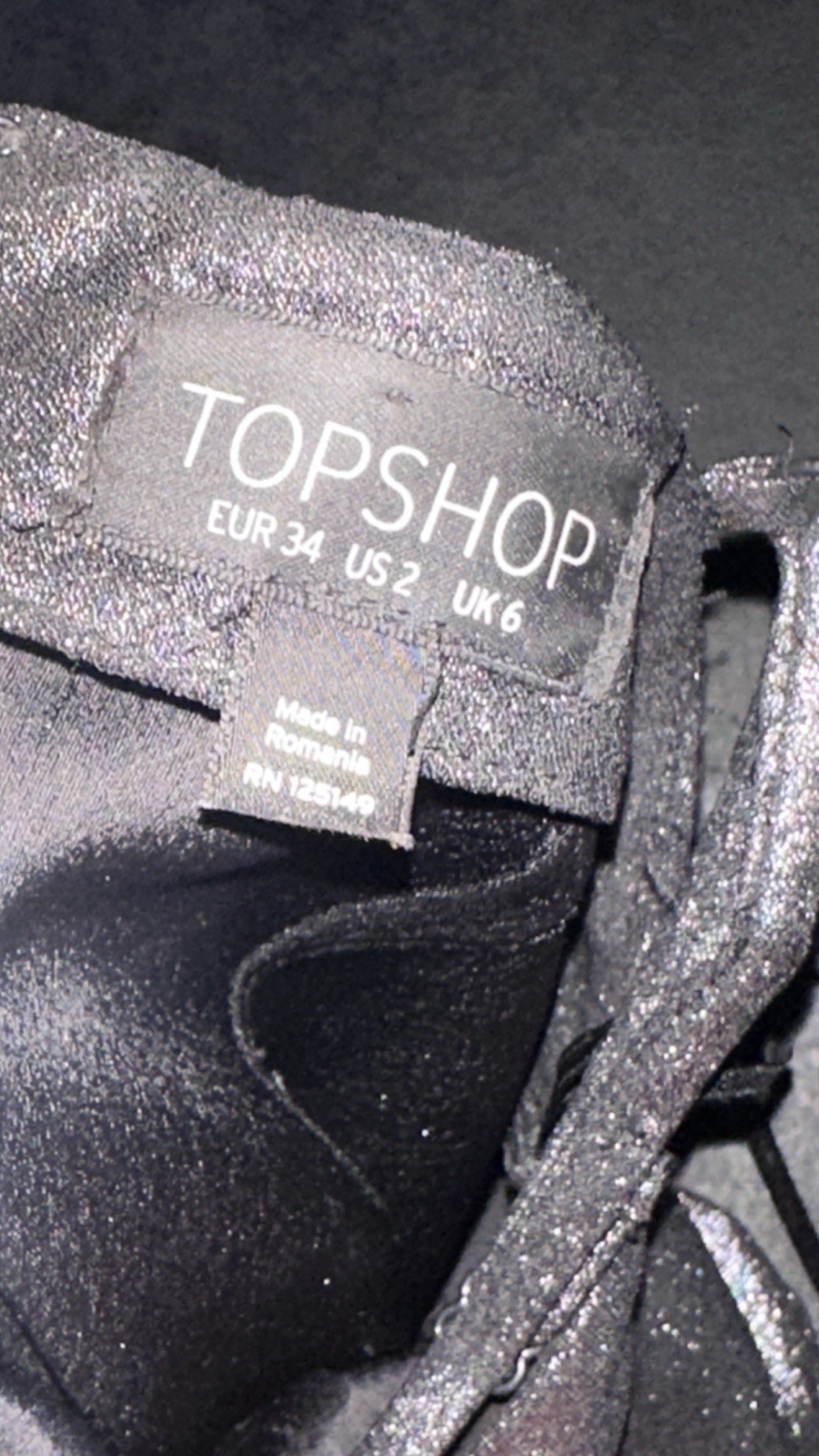 The Topshop Metallic Black Jumpsuit in size US 2 is a stylish one-piece outfit designed for women. This jumpsuit features a metallic black color that adds a touch of glam and sophistication to any outfit. With its regular fit and jumpsuit style, it offers a comfortable and flattering silhouette for the fashion-forward woman. Perfect for various occasions, this jumpsuit from Topshop is a versatile and trendy addition to any wardrobe.
