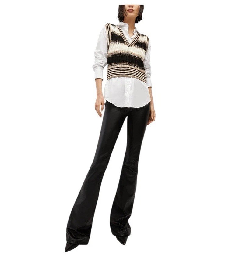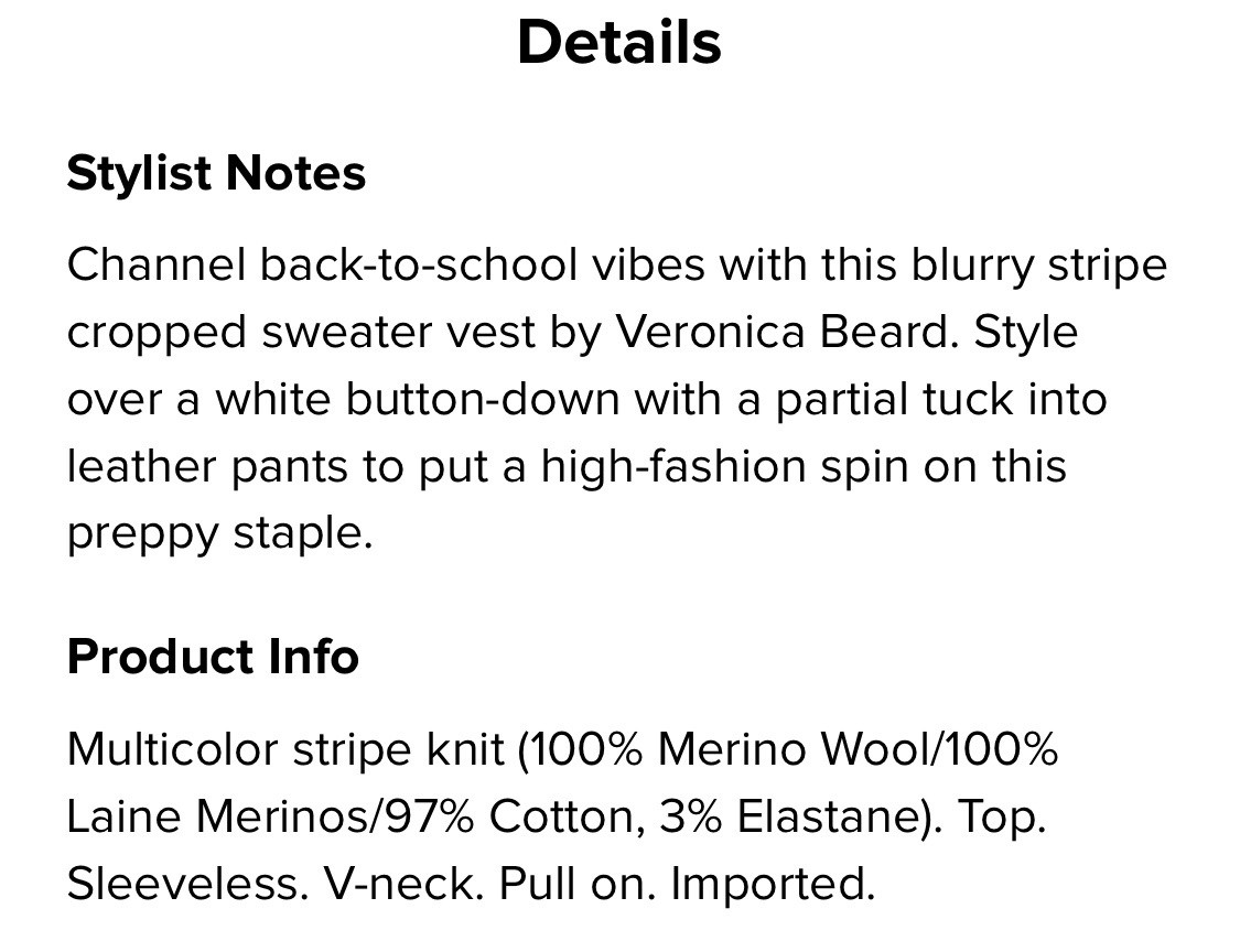 Channel back-to-school vibes with this blurry stripe cropped sweater vest by Veronica Beard. Style over a white button-down with a partial tuck into leather pants to put a high-fashion spin on this preppy staple.