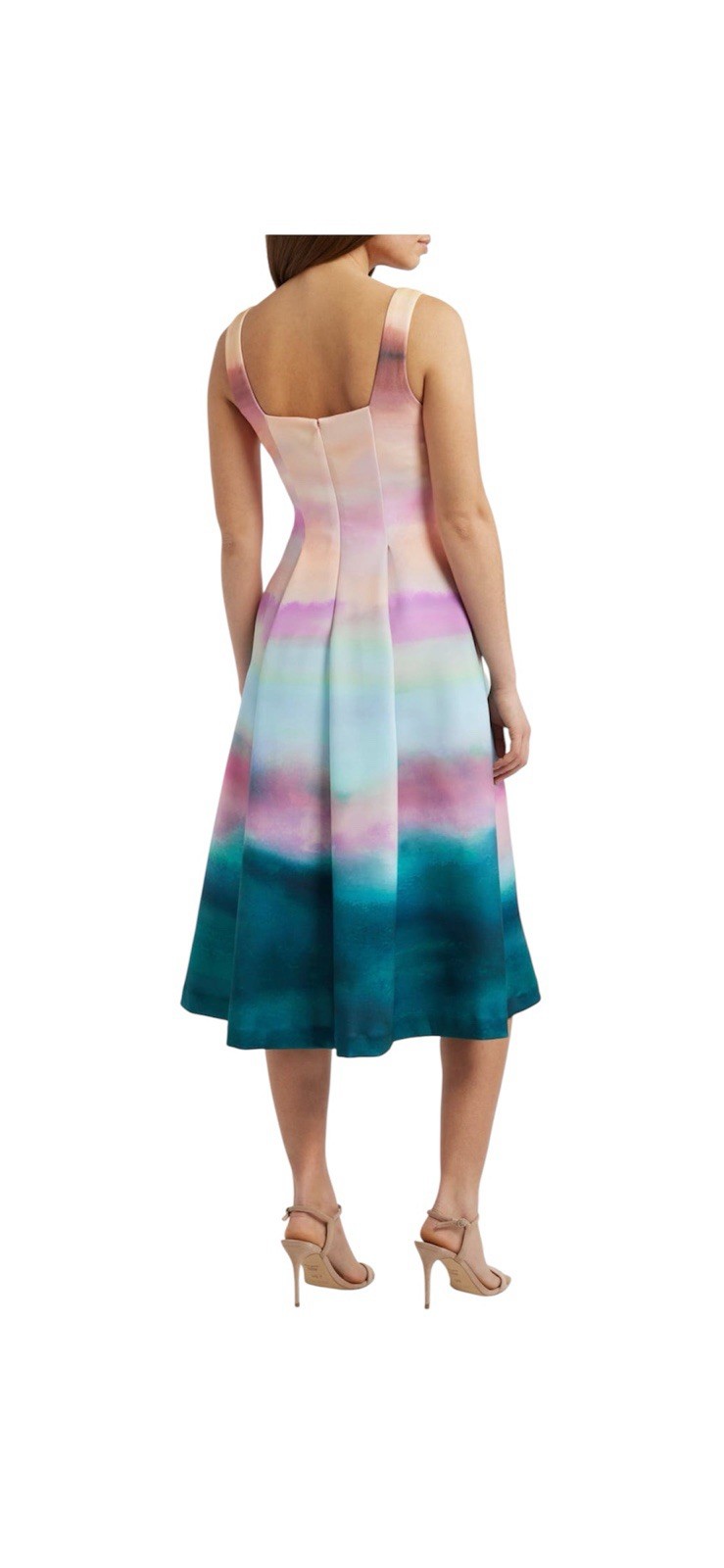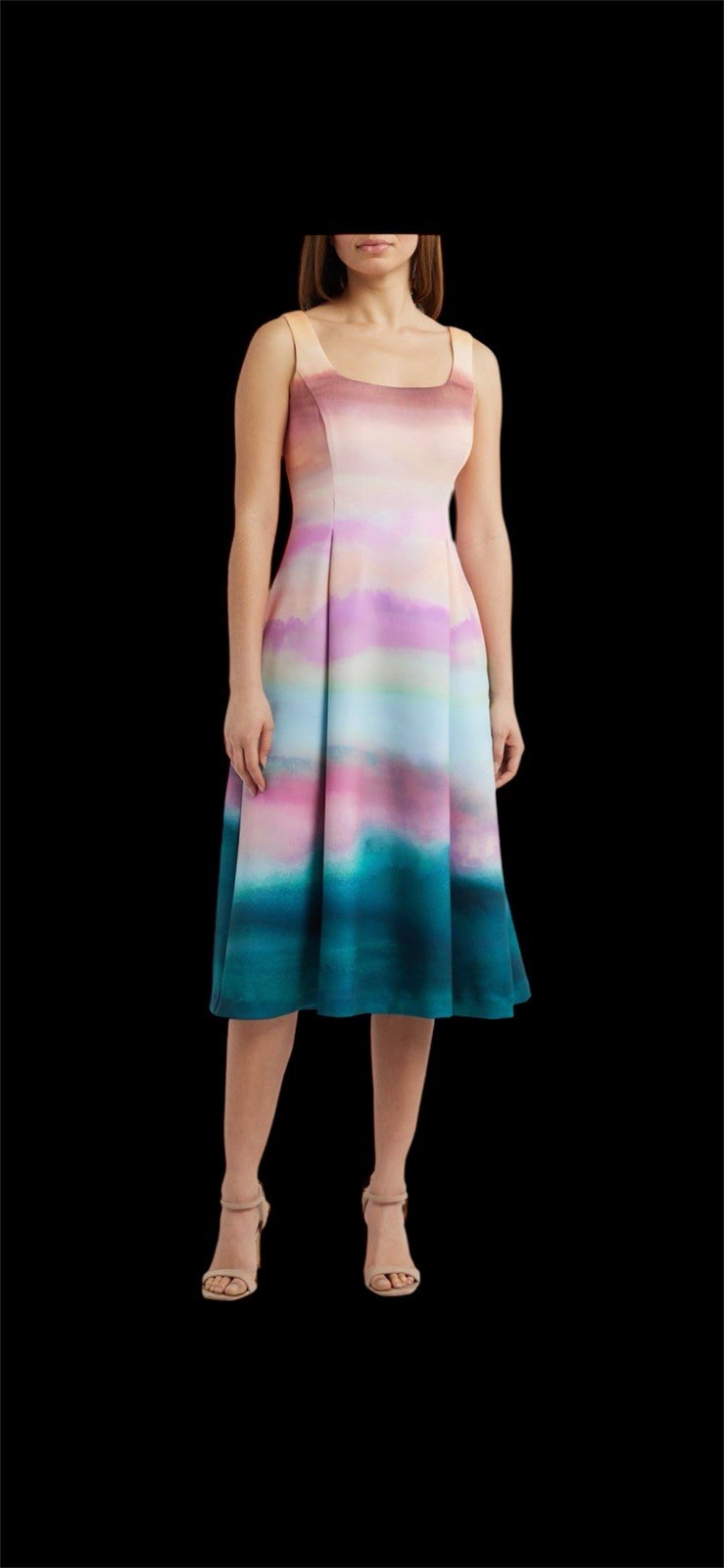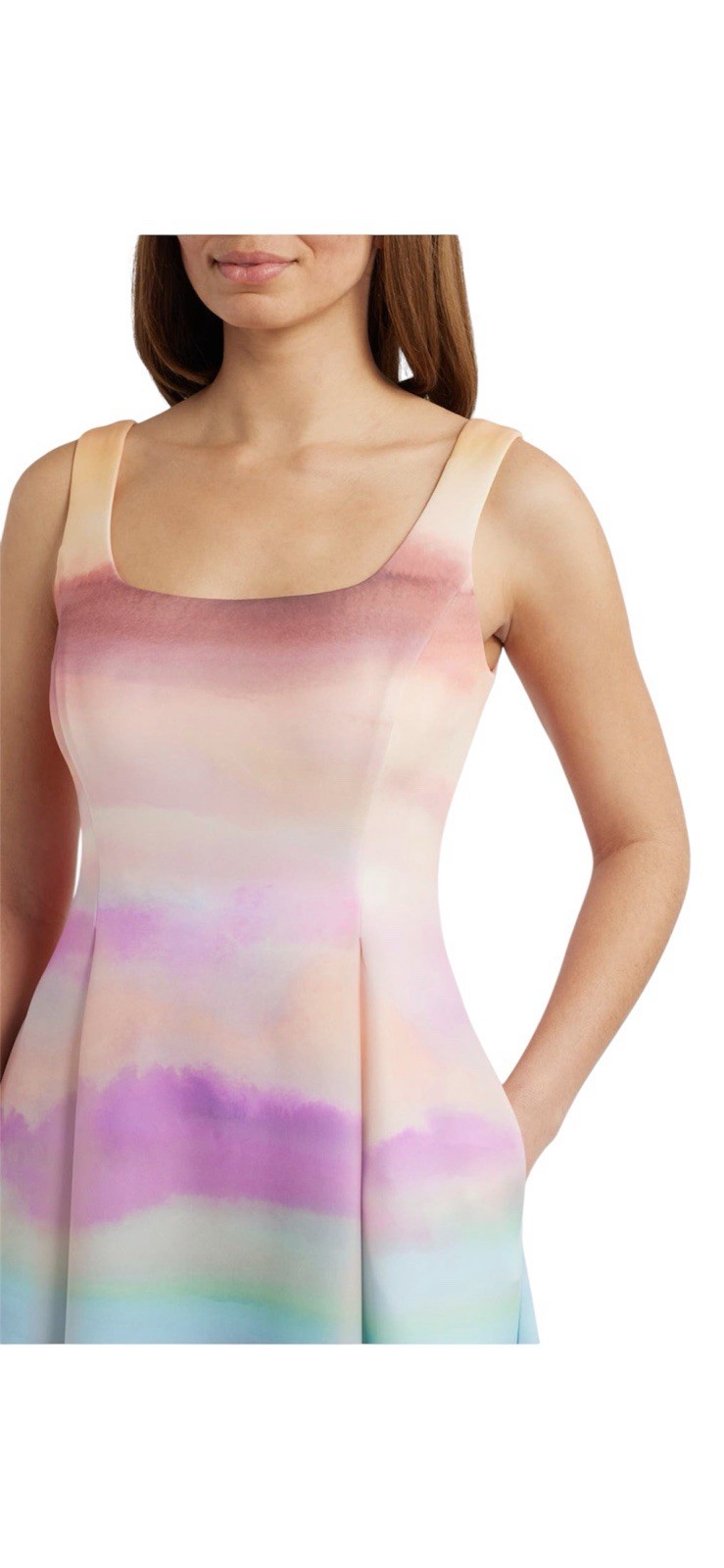 The Vince Camuto Fit & Flare Cocktail Dress is a stylish and versatile choice for parties or cocktail events. This sleeveless dress features a round neckline, zip closure, and a flattering fit & flare silhouette. Made from polyester, it is perfect for summer and spring occasions. The knee-length dress comes in a vibrant multicolor and is lined for added comfort and quality. Upgrade your wardrobe with this classic and elegant piece from the renowned Vince Camuto brand.
